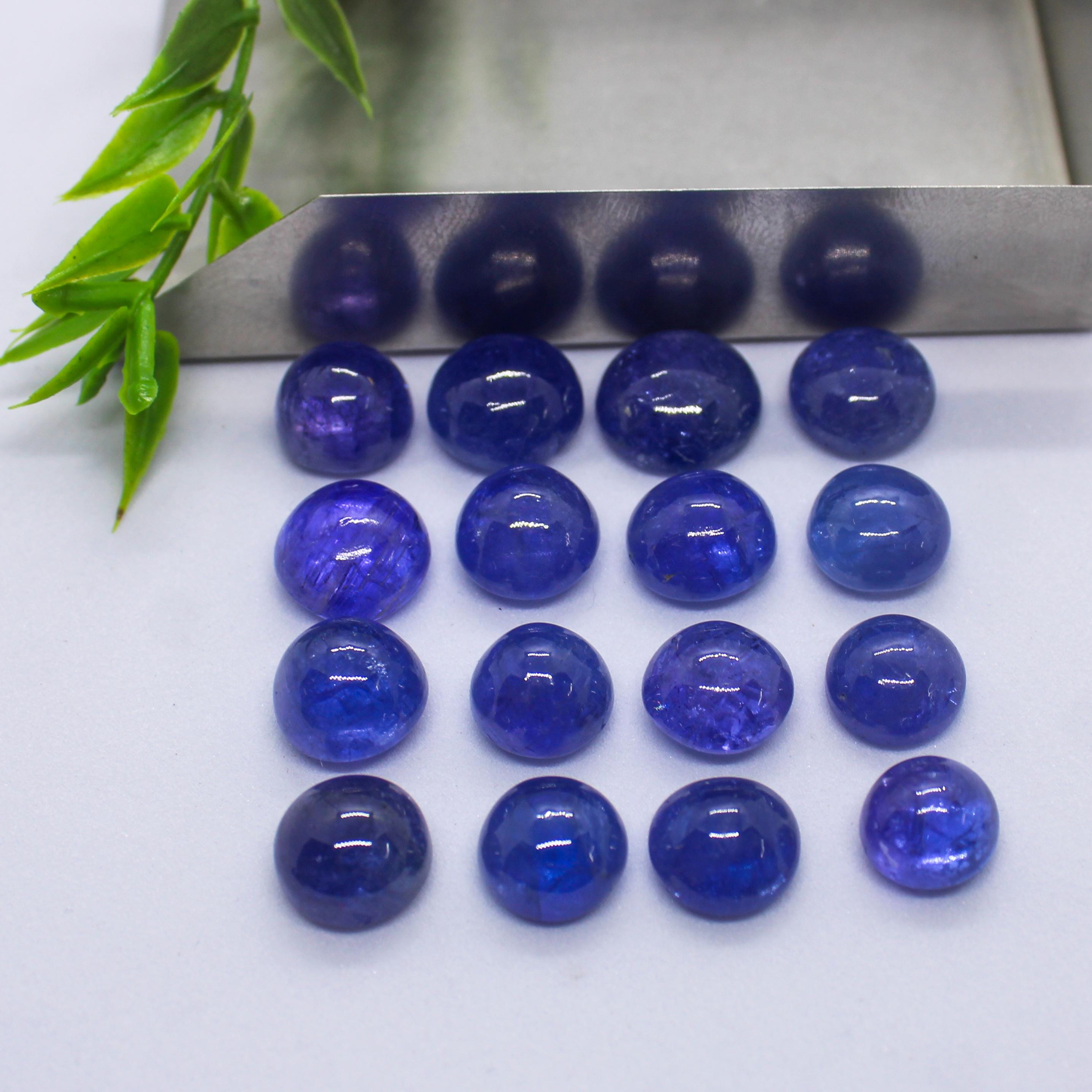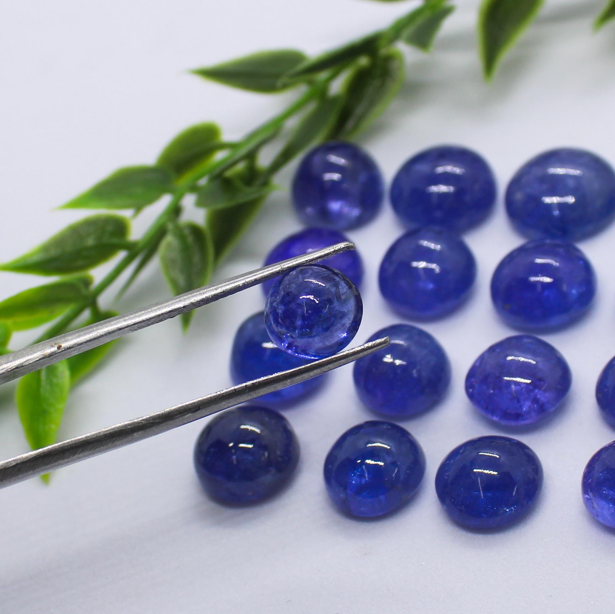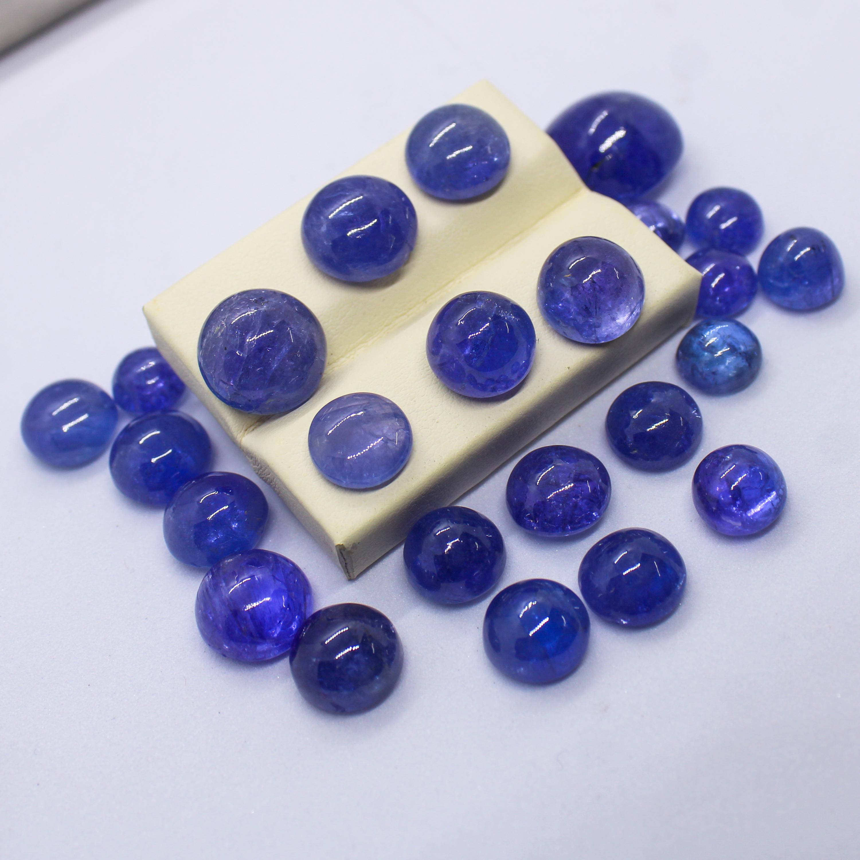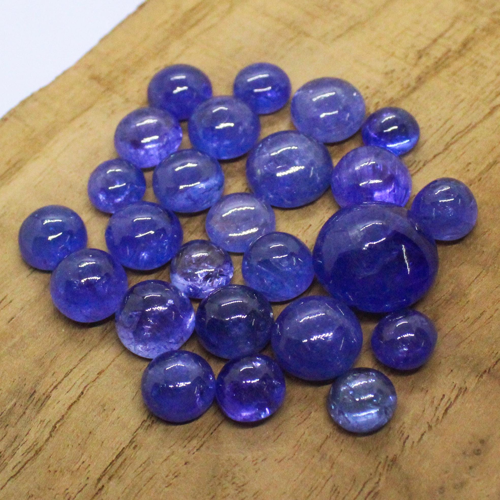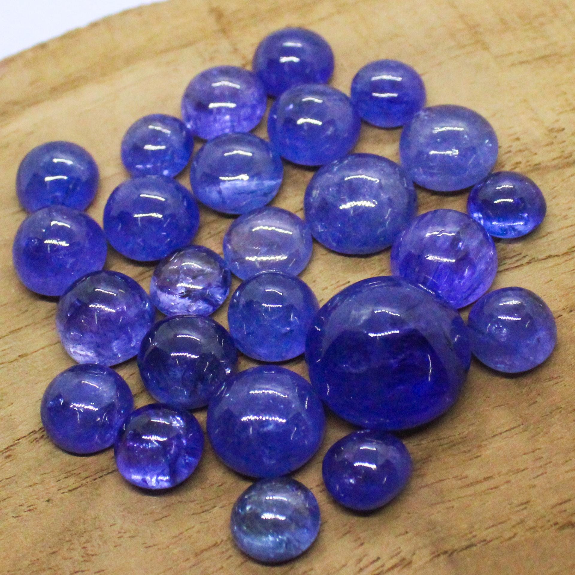 GEMSTONE - NATURAL BLUE TANZANITE ROUND CABOCHON LOT