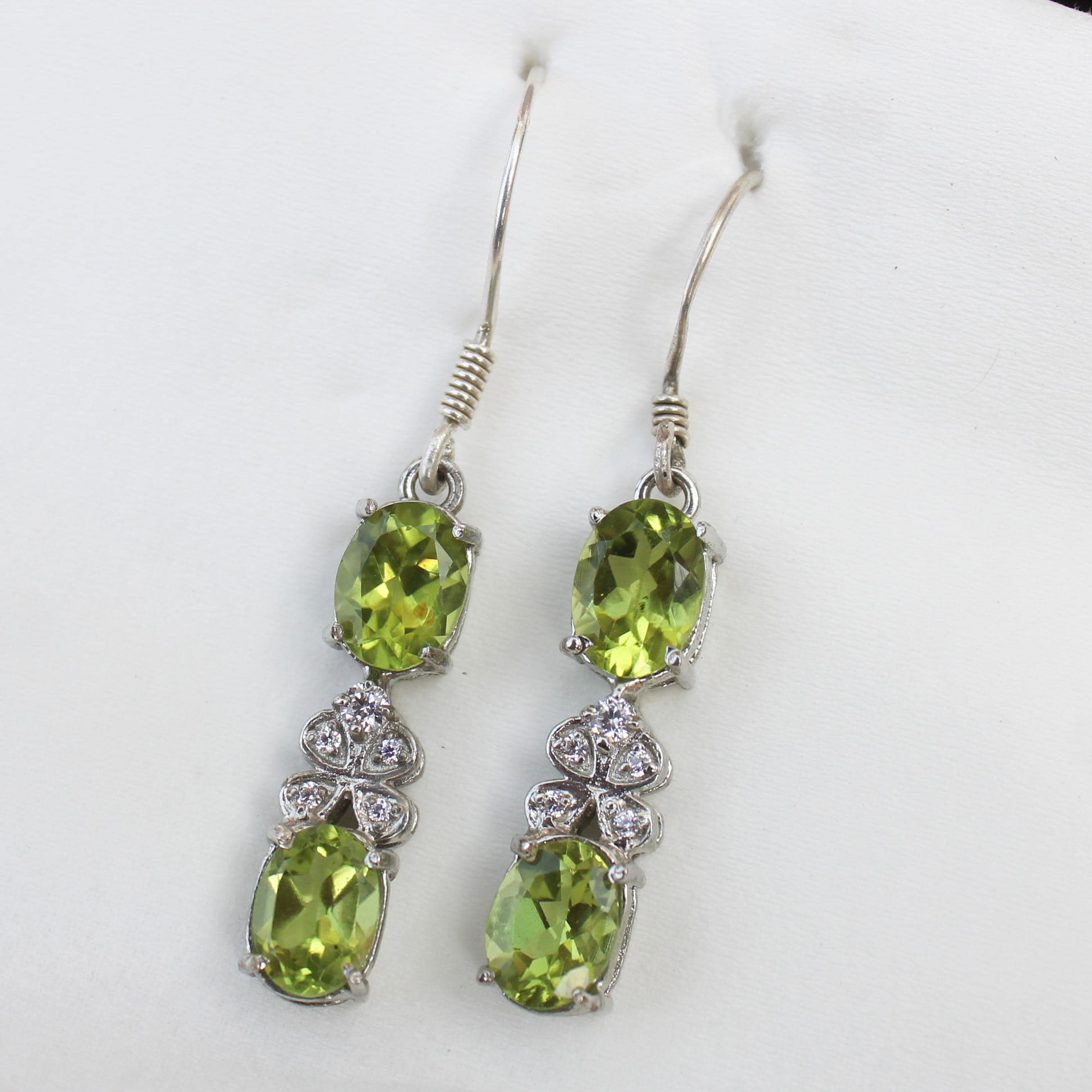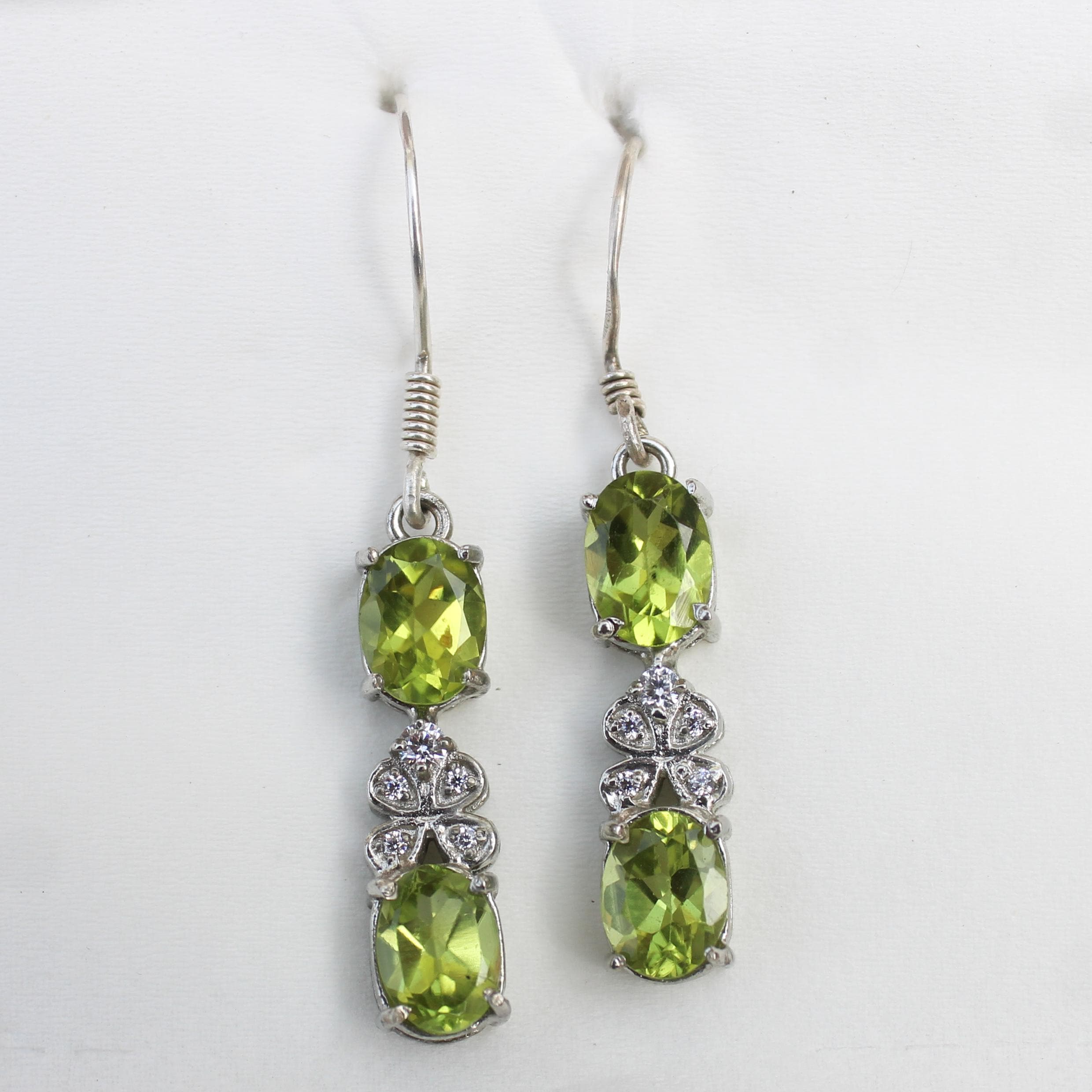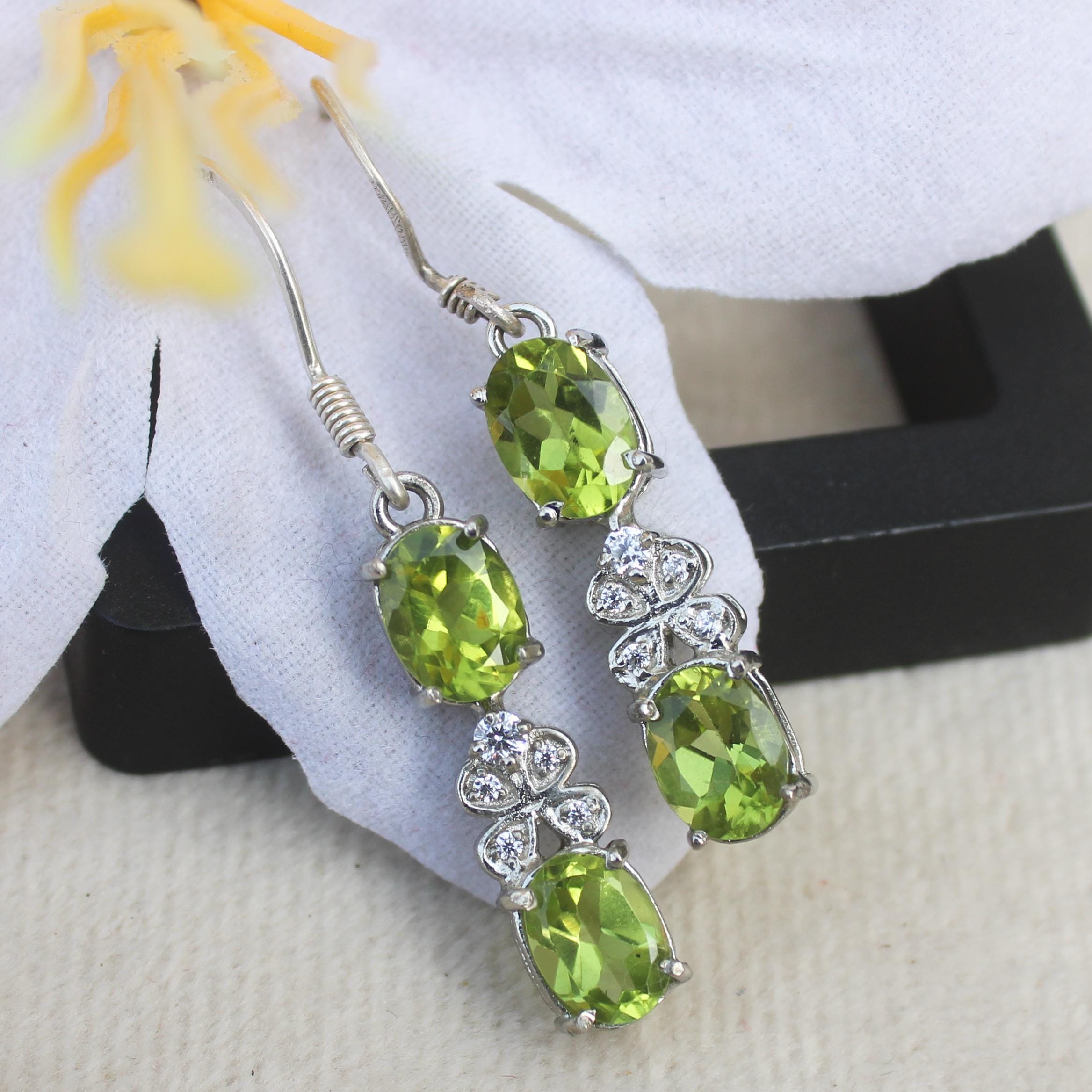 NATURAL GREEN PERIDOT EARRING WITH STERLING SILVER