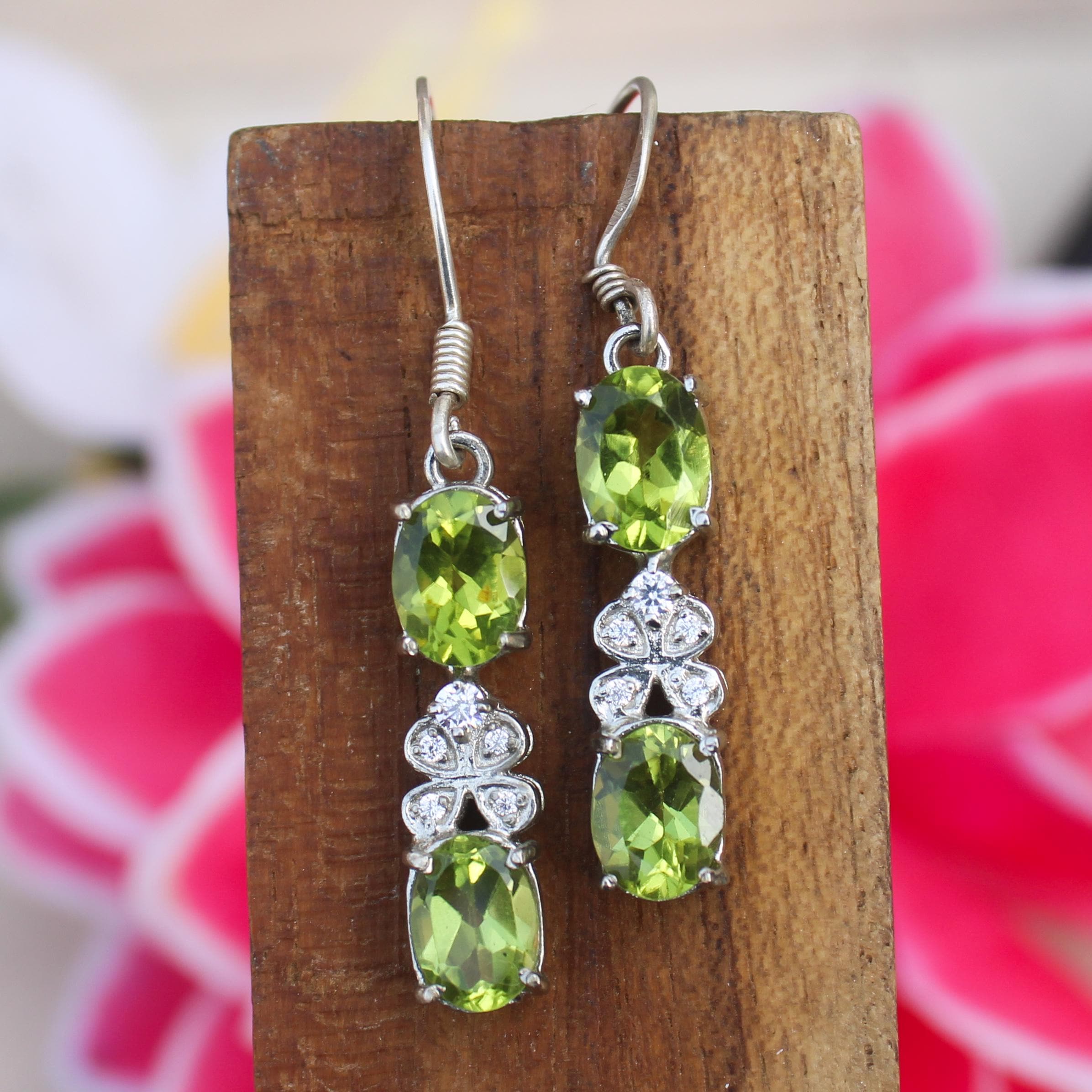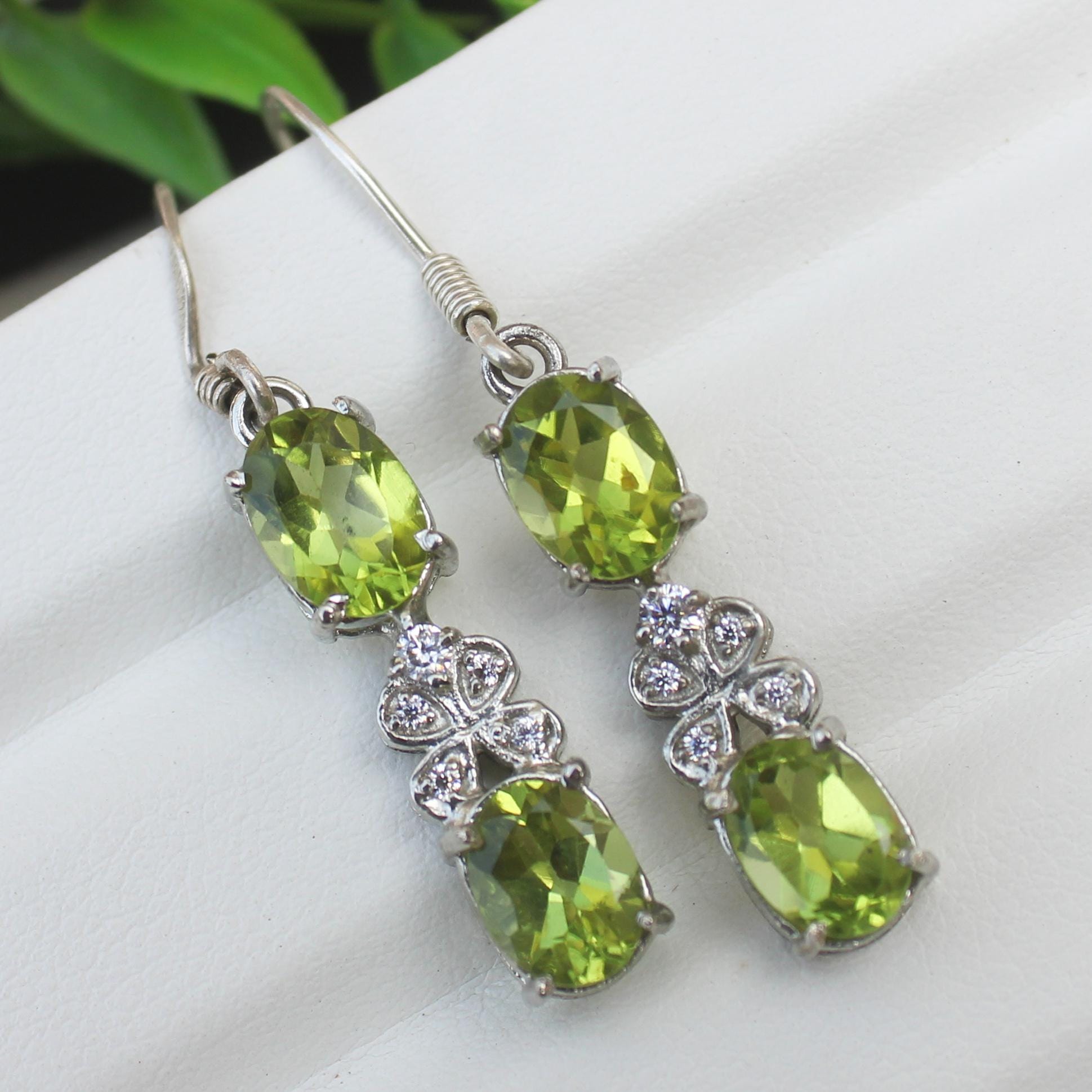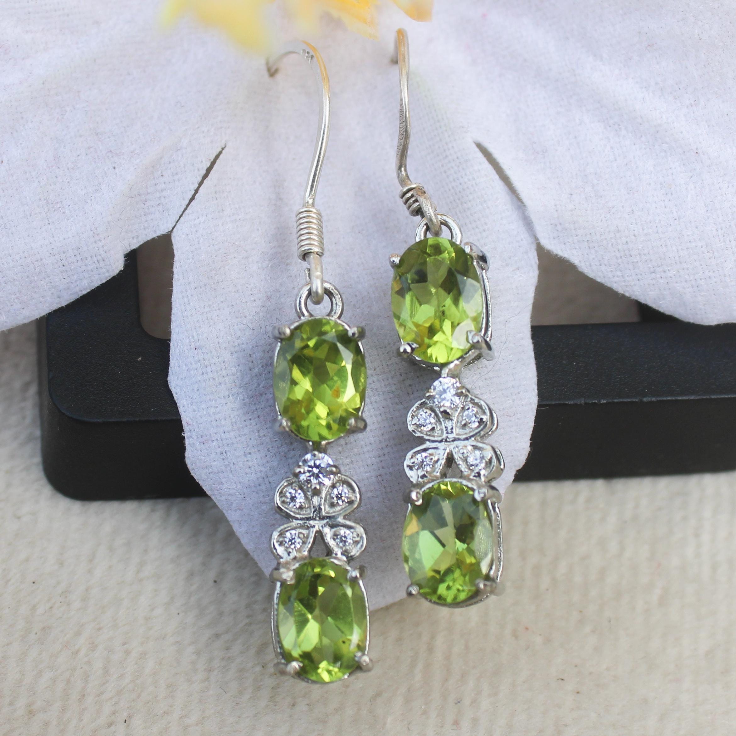NATURAL GREEN PERIDOT EARRING WITH STERLING SILVER