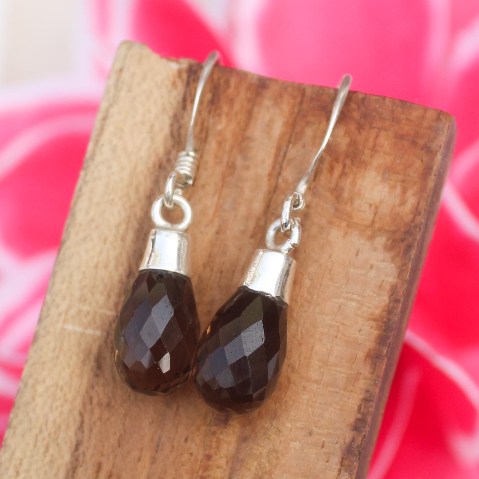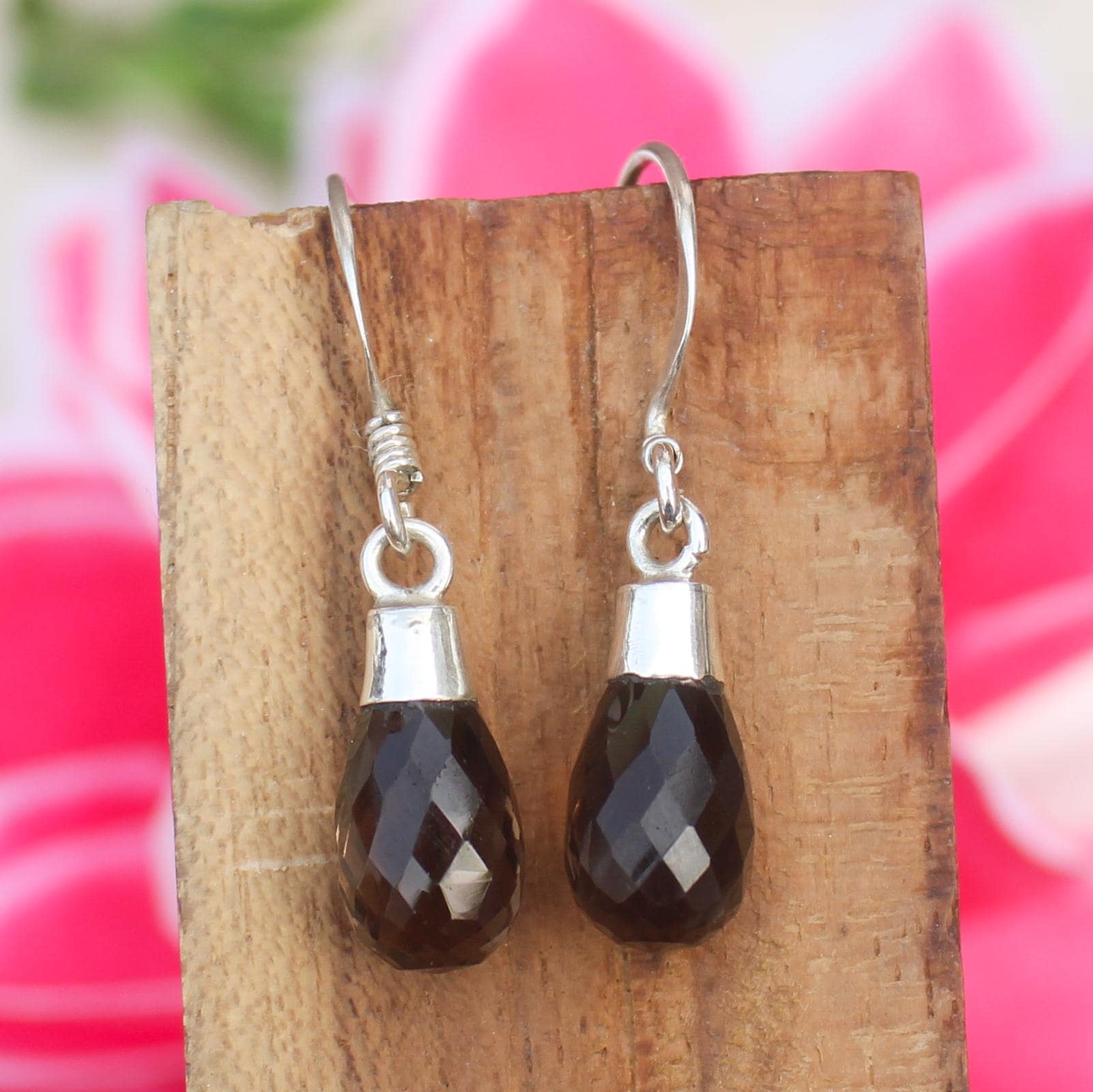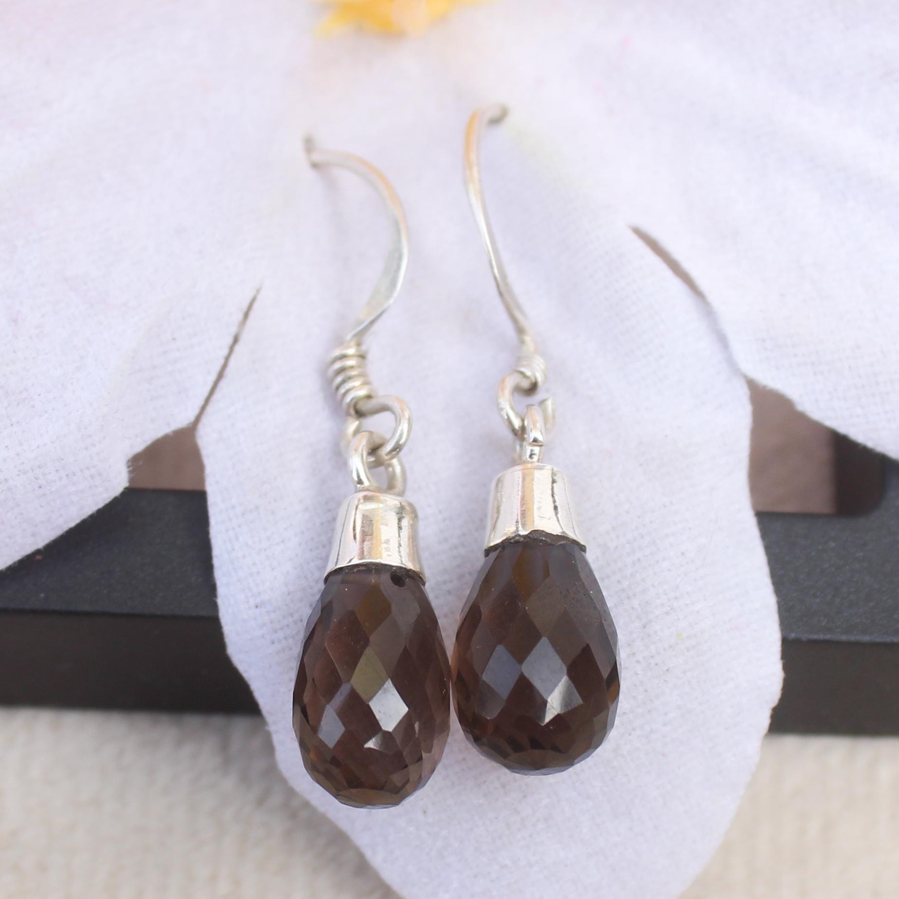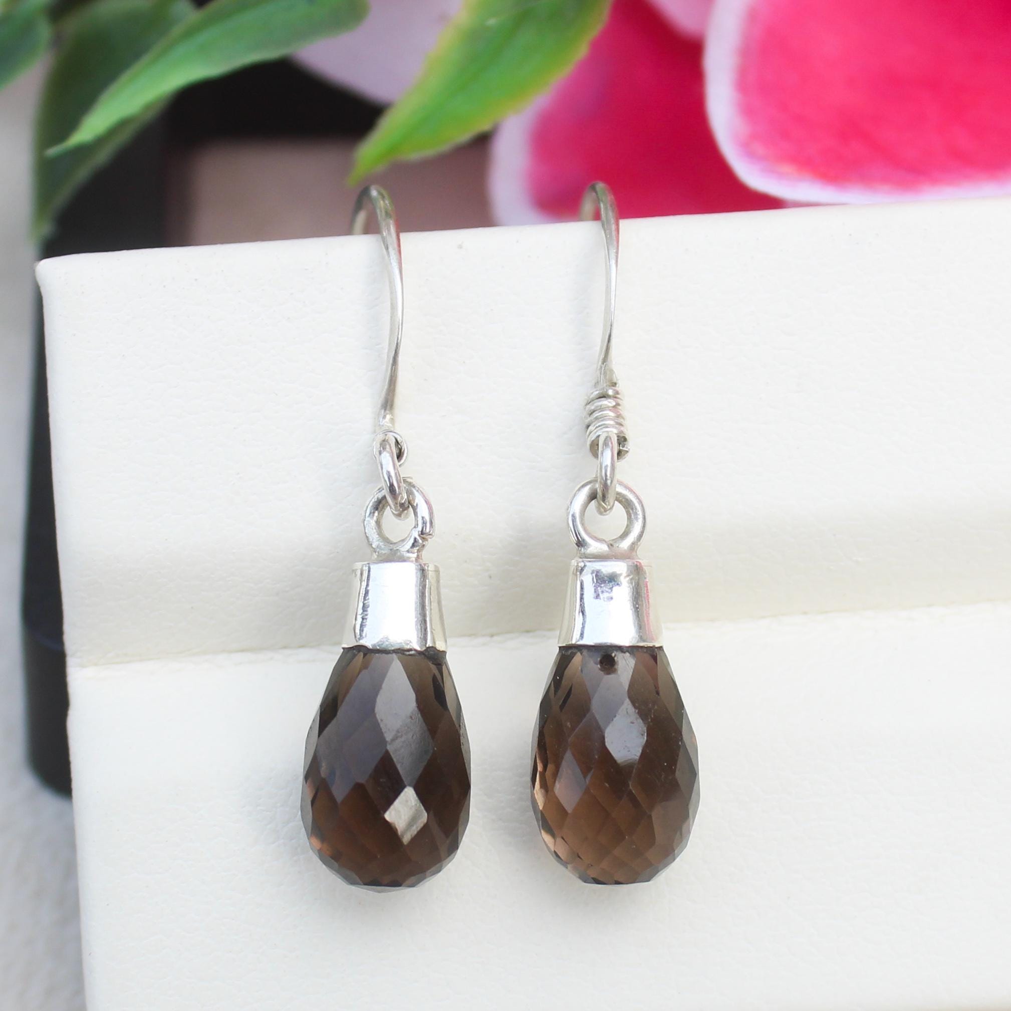 NATURAL BROWN SMOKEY QUARTZ EARRING WITH STERLING SILVER