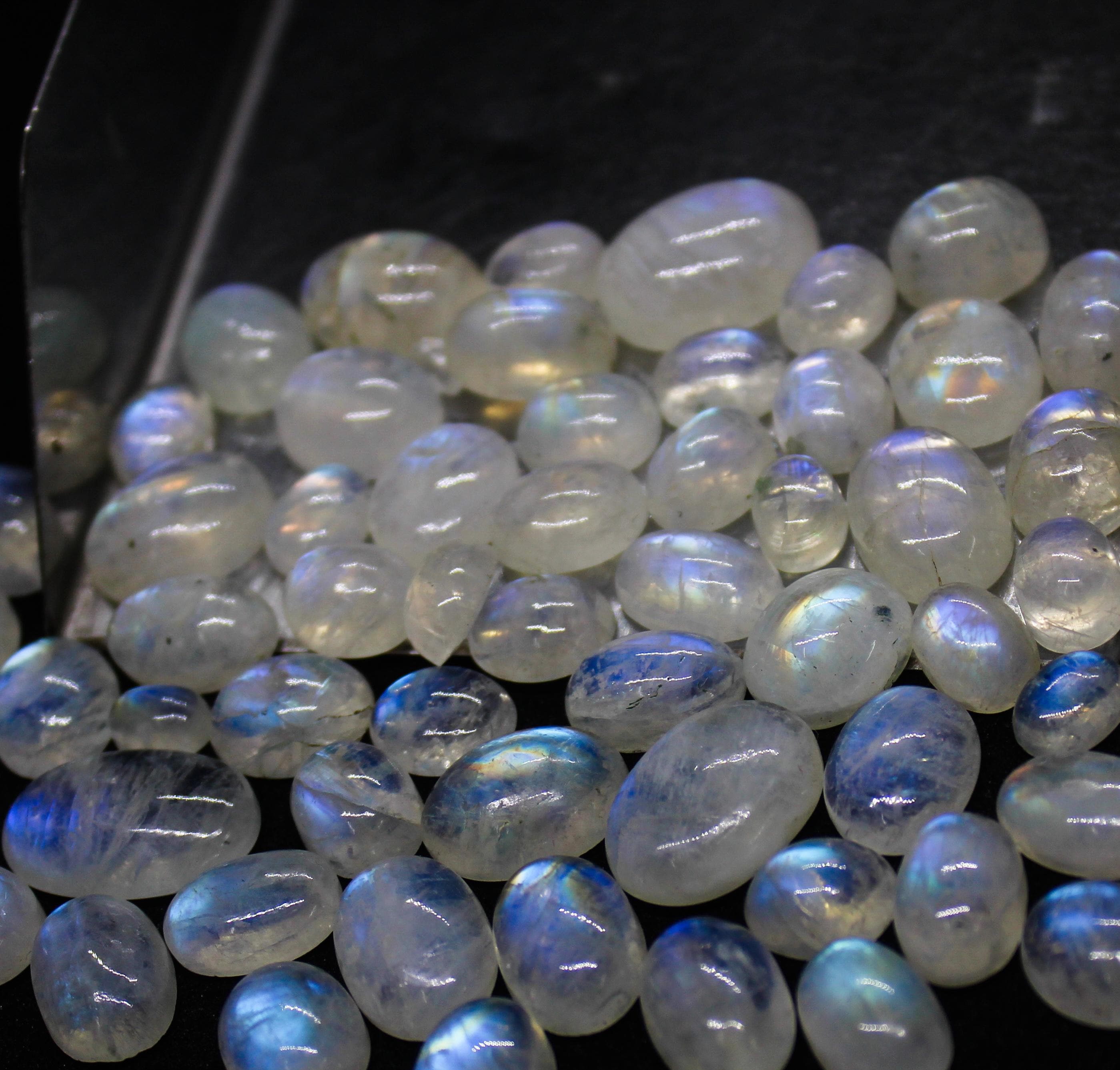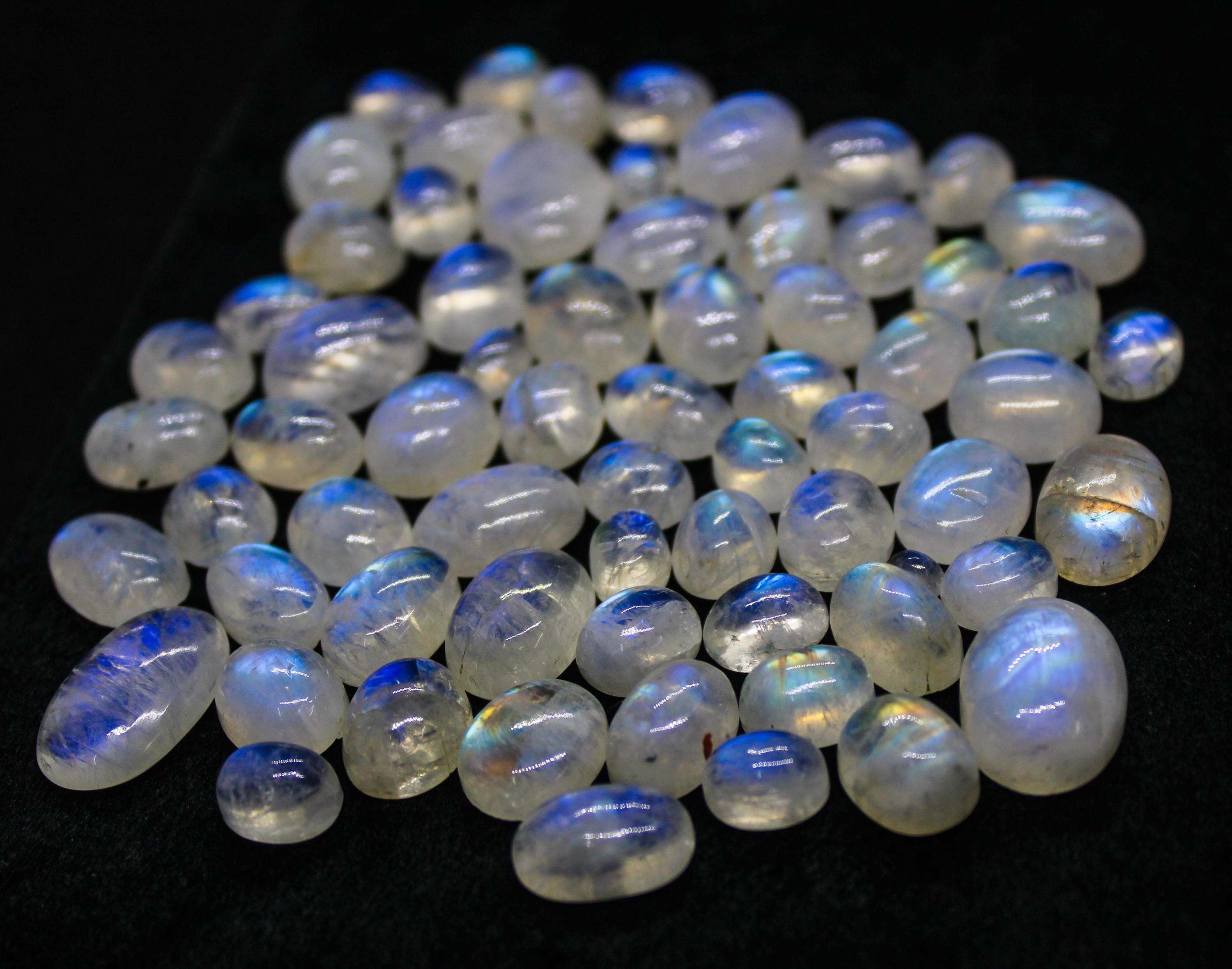 100% NATURAL WHITE RAINBOW MOONSTONE CABOCHON