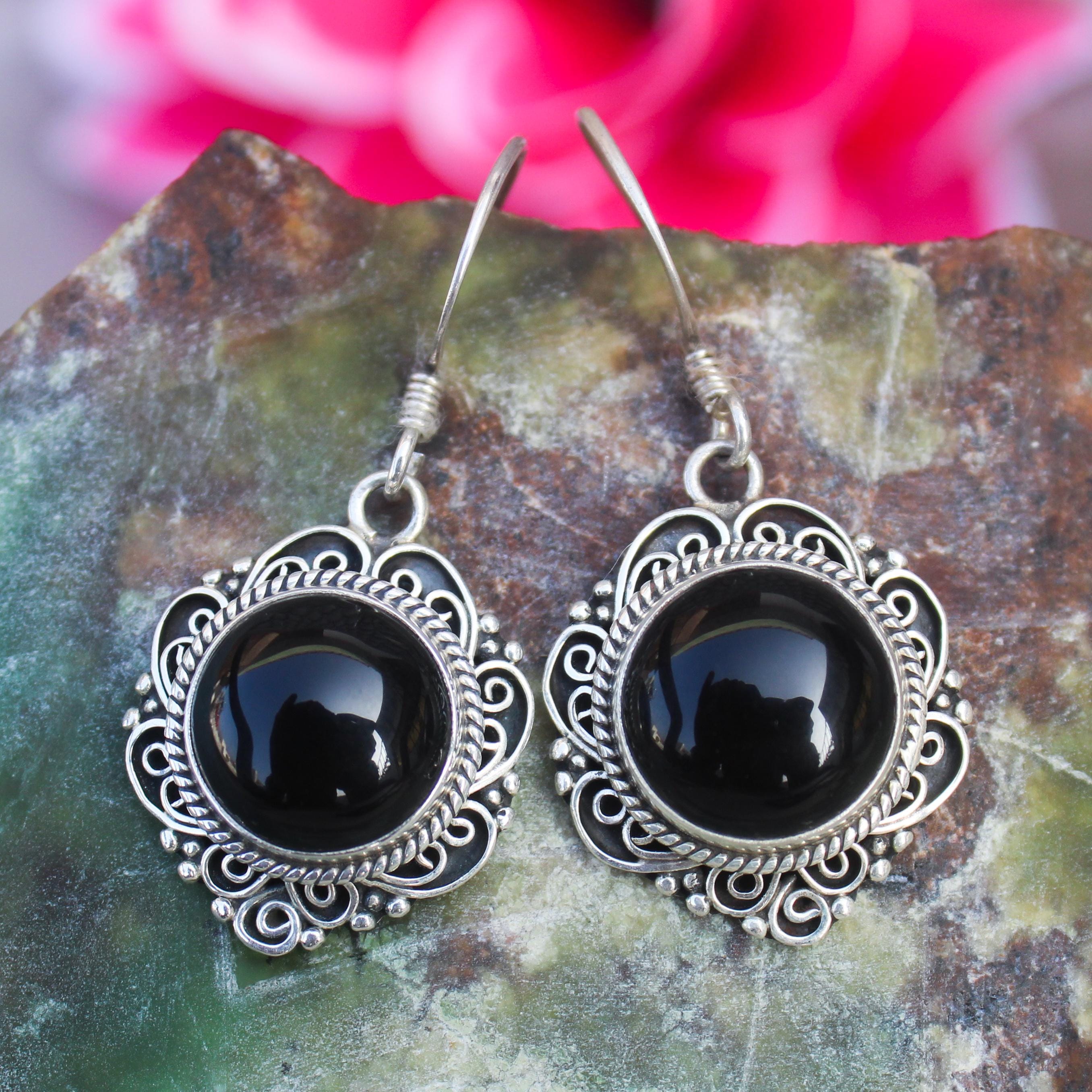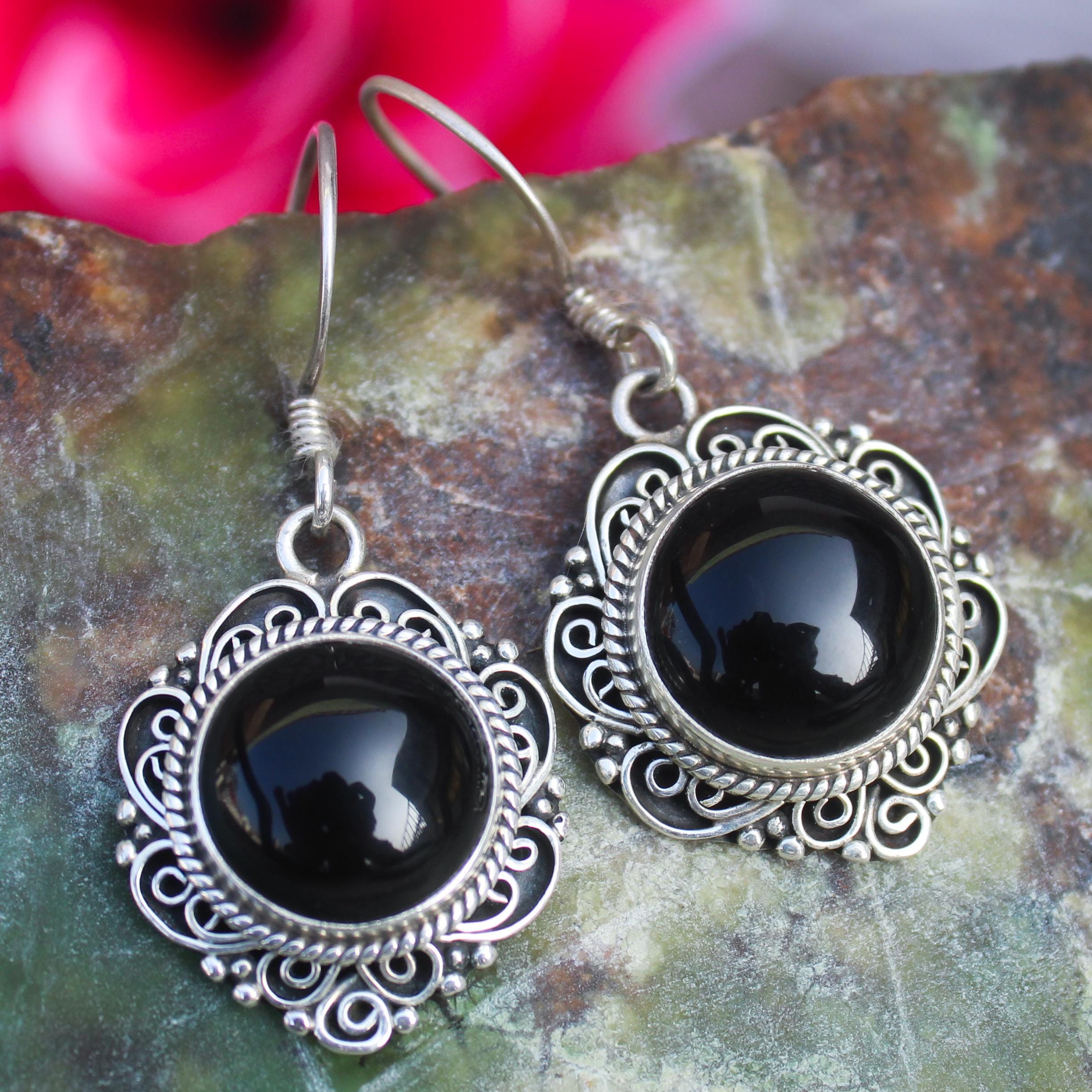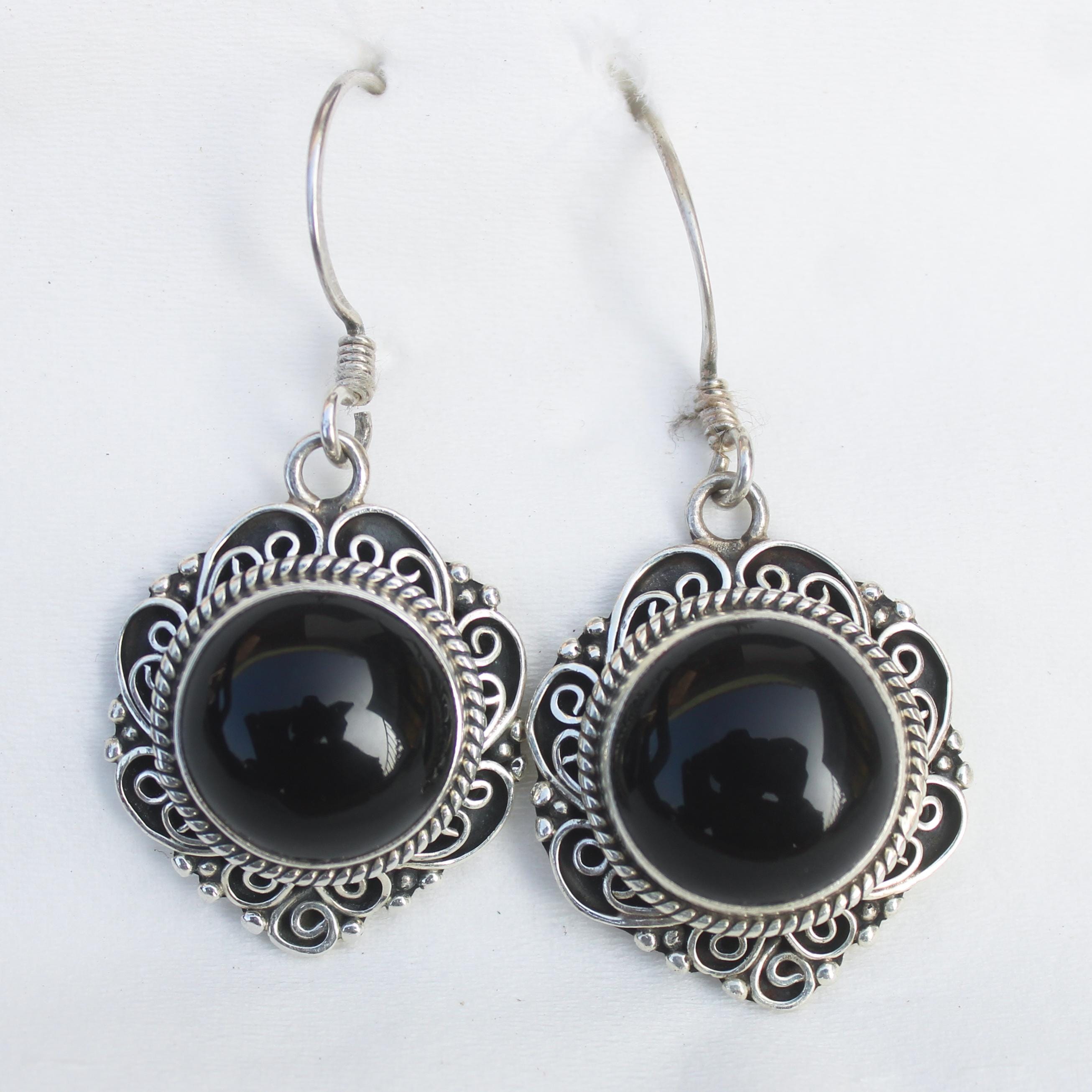 NATURAL BLACK ONYX EARRING WITH STERLING SILVER