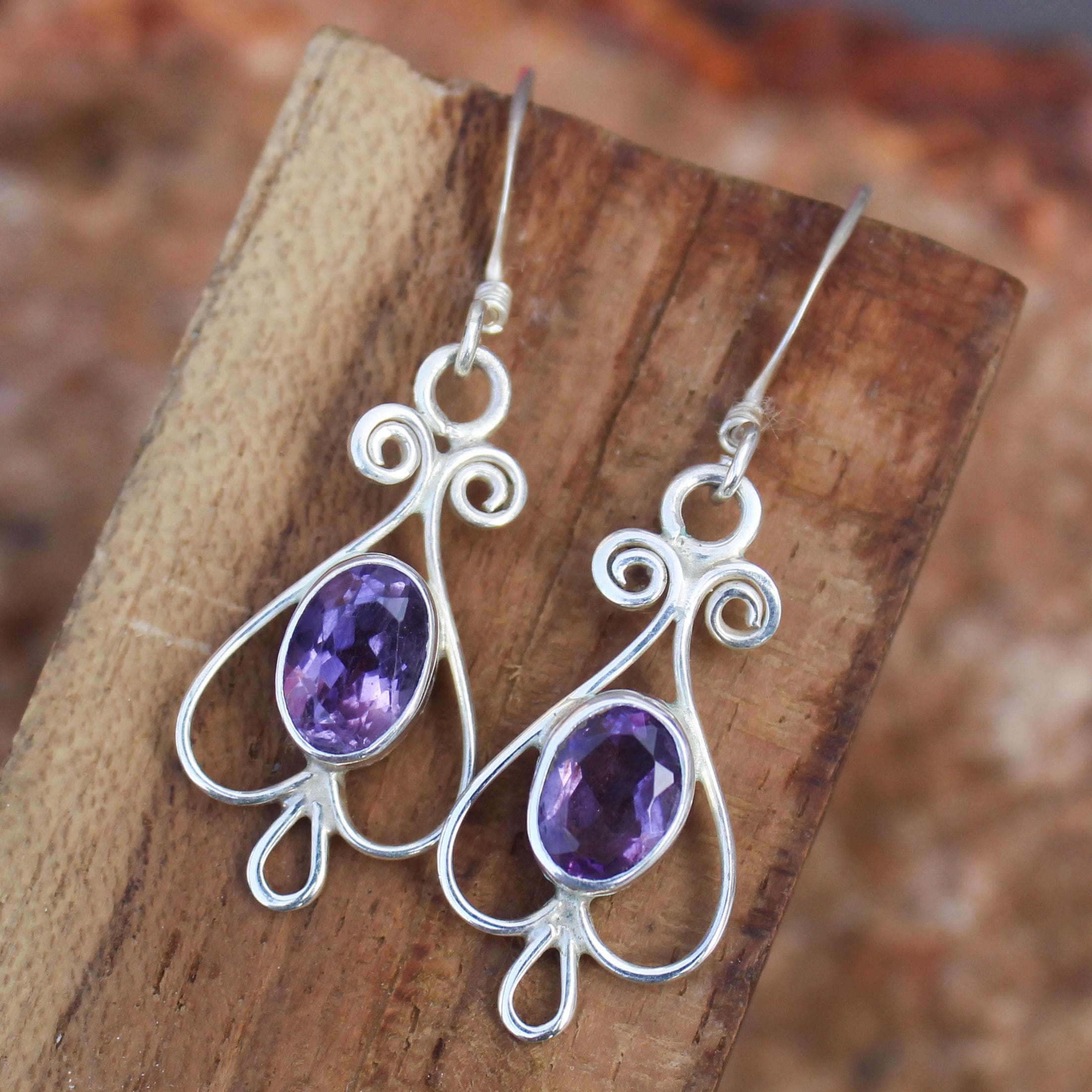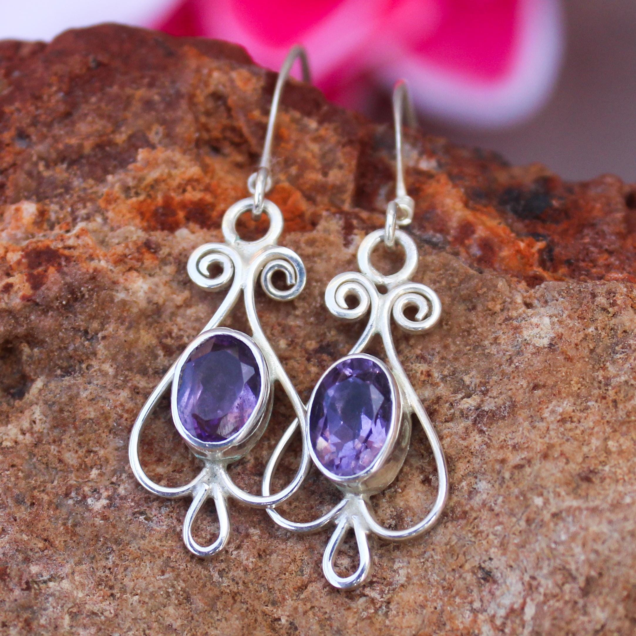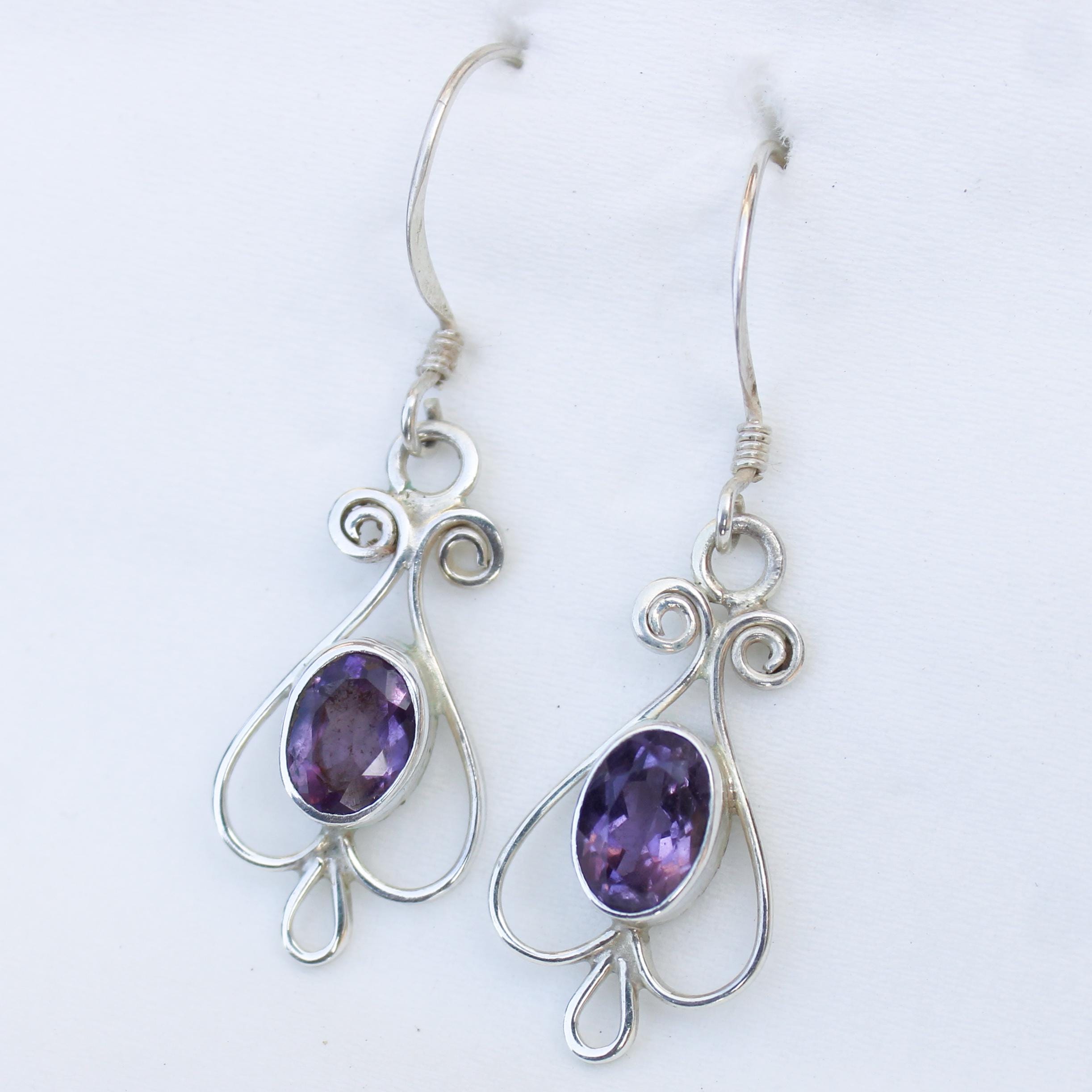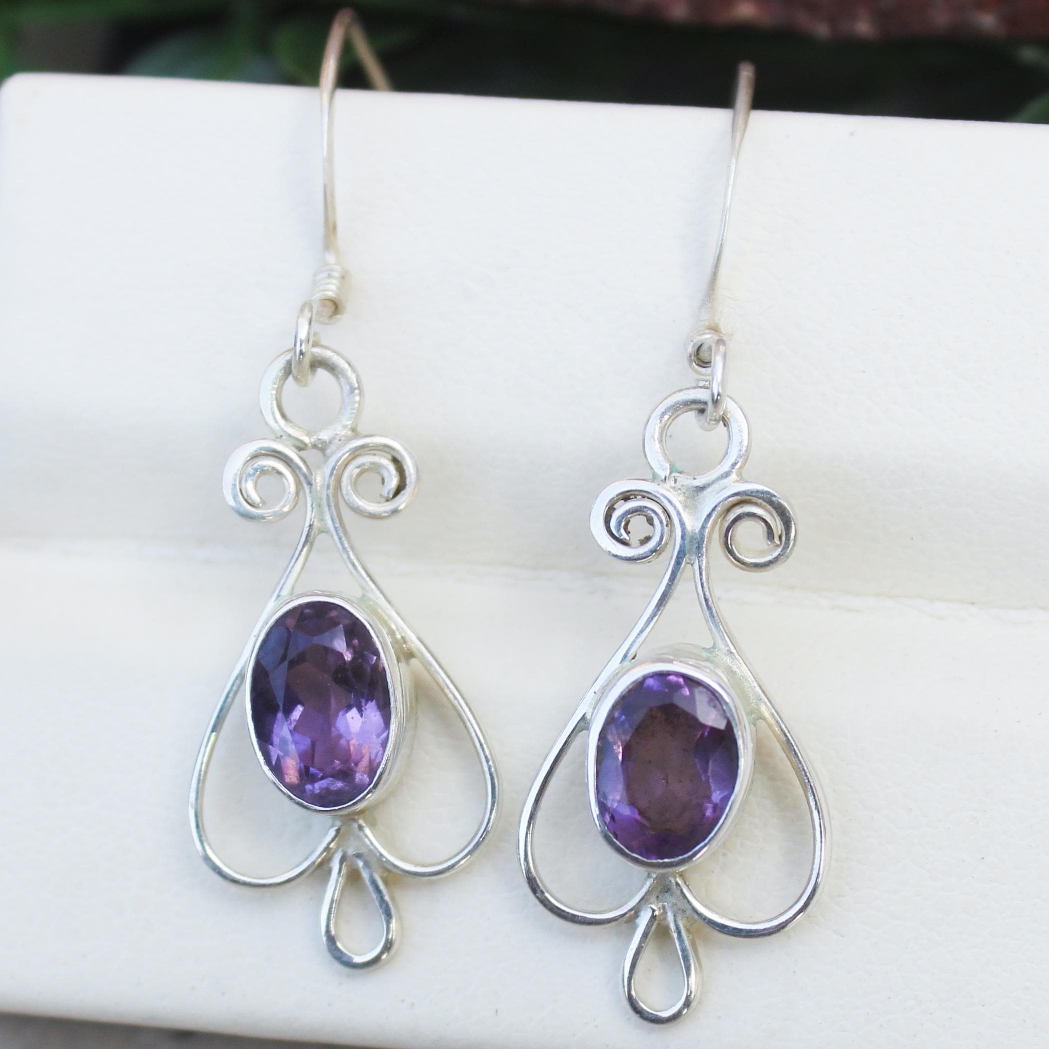 NATURAL PURPLE AMETHYST EARRING WITH STERLING SILVER