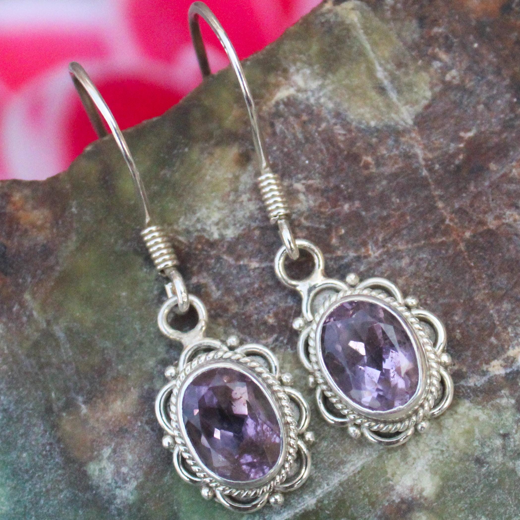 NATURAL PURPLE AMETHYST EARRING WITH STERLING SILVER