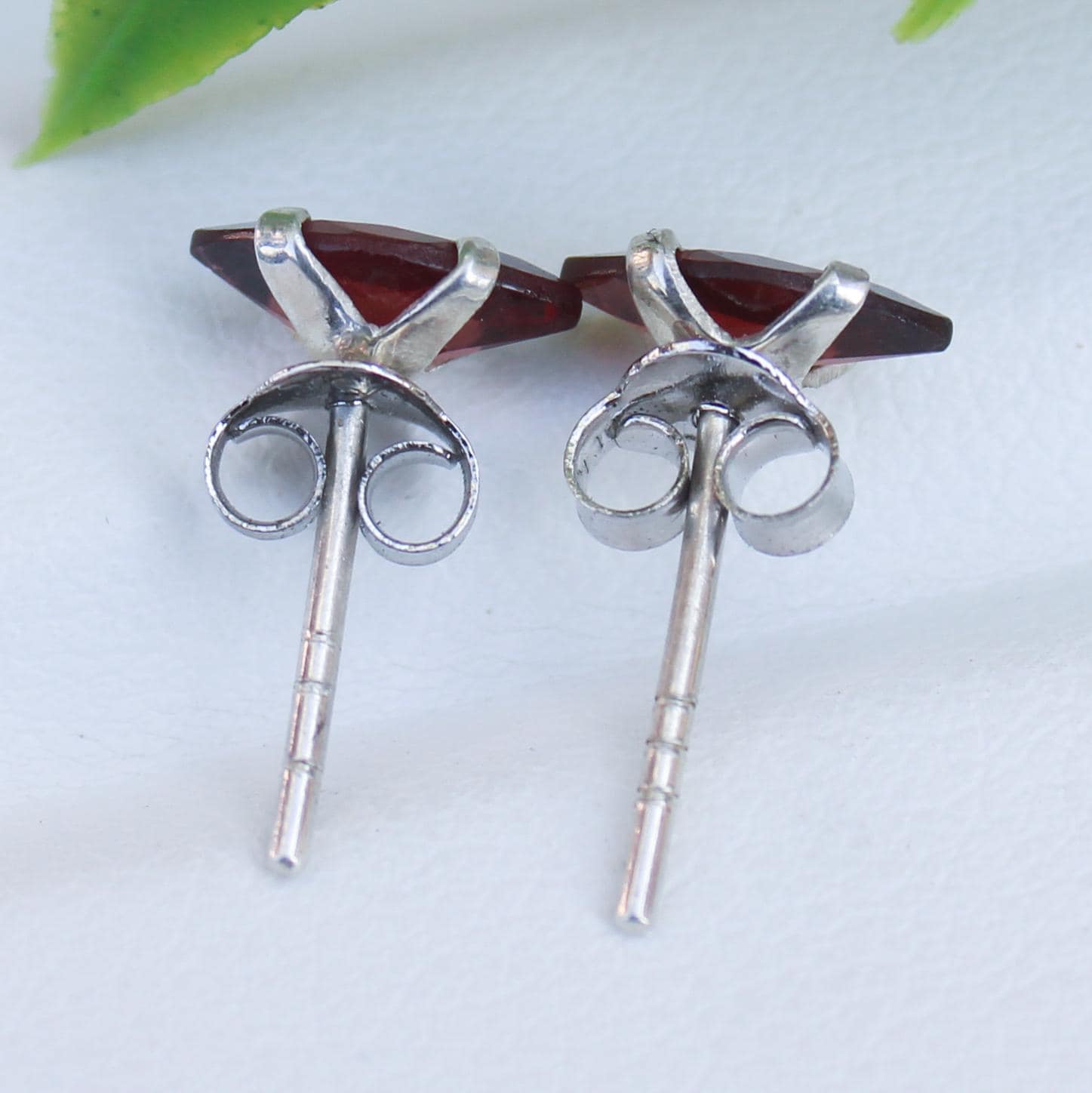 NATURAL RED GARNET STUDS WITH STERLING SILVER
