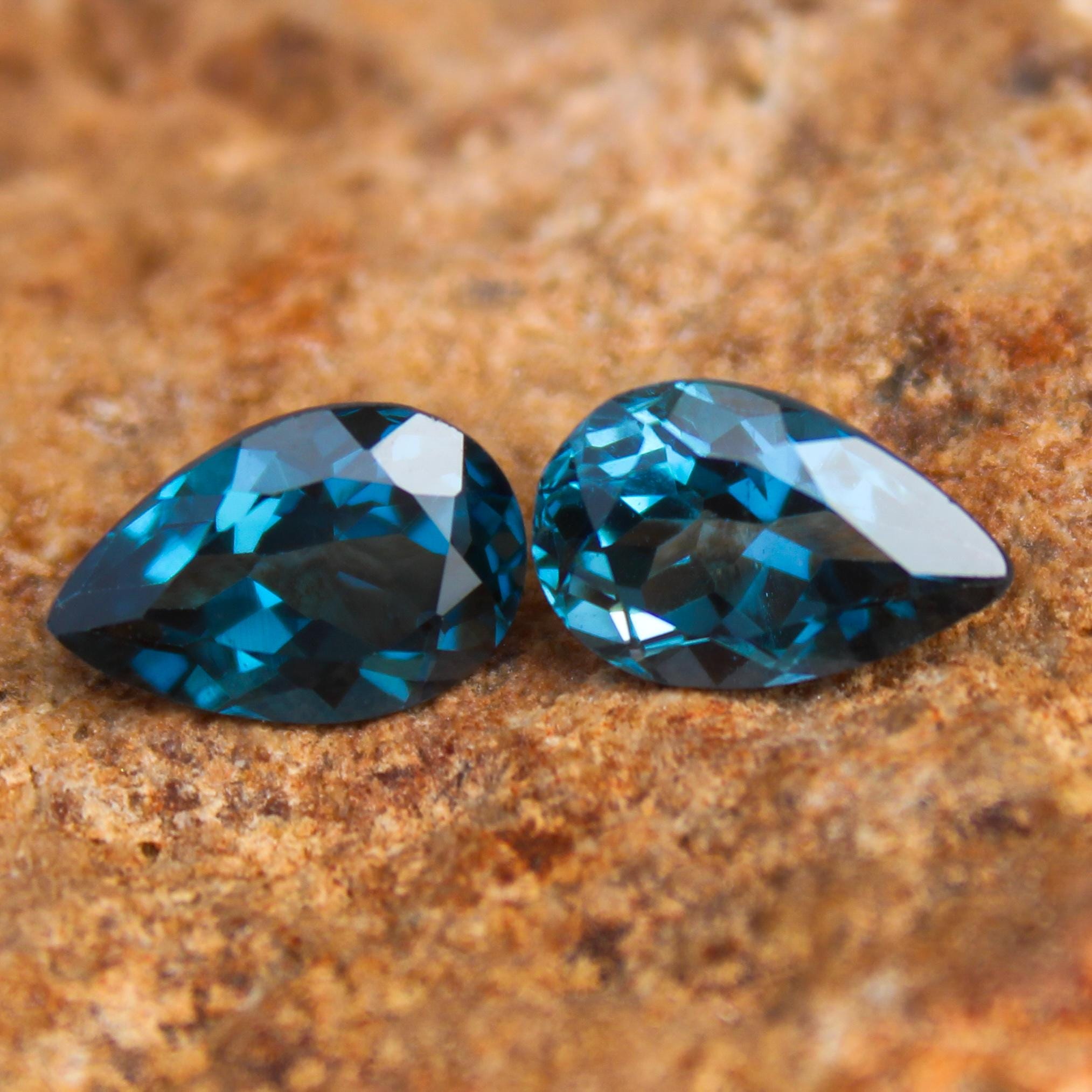 GEMSTONE - NATURAL FACETED LONDON BLUE TOPAZ PAIR