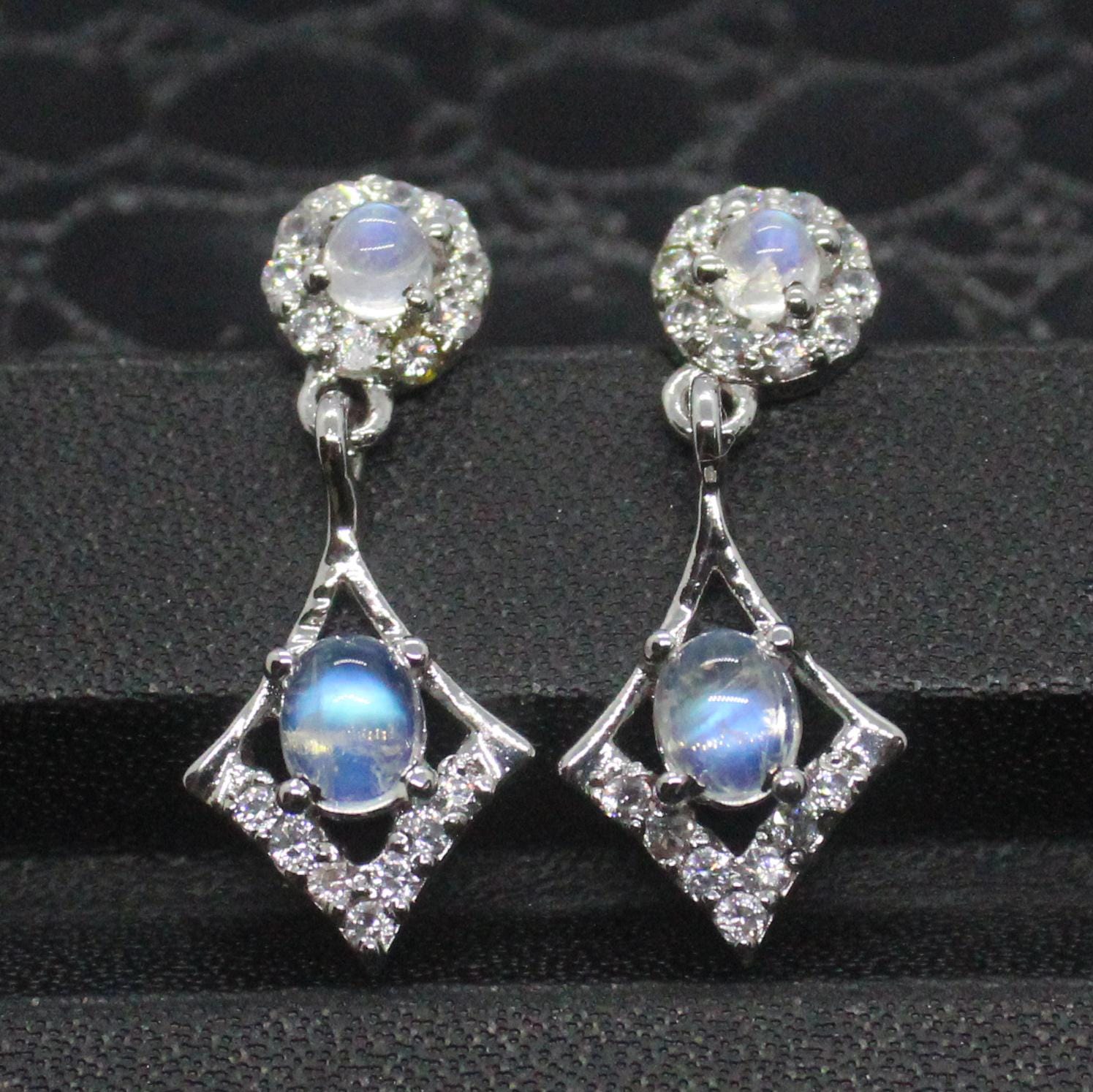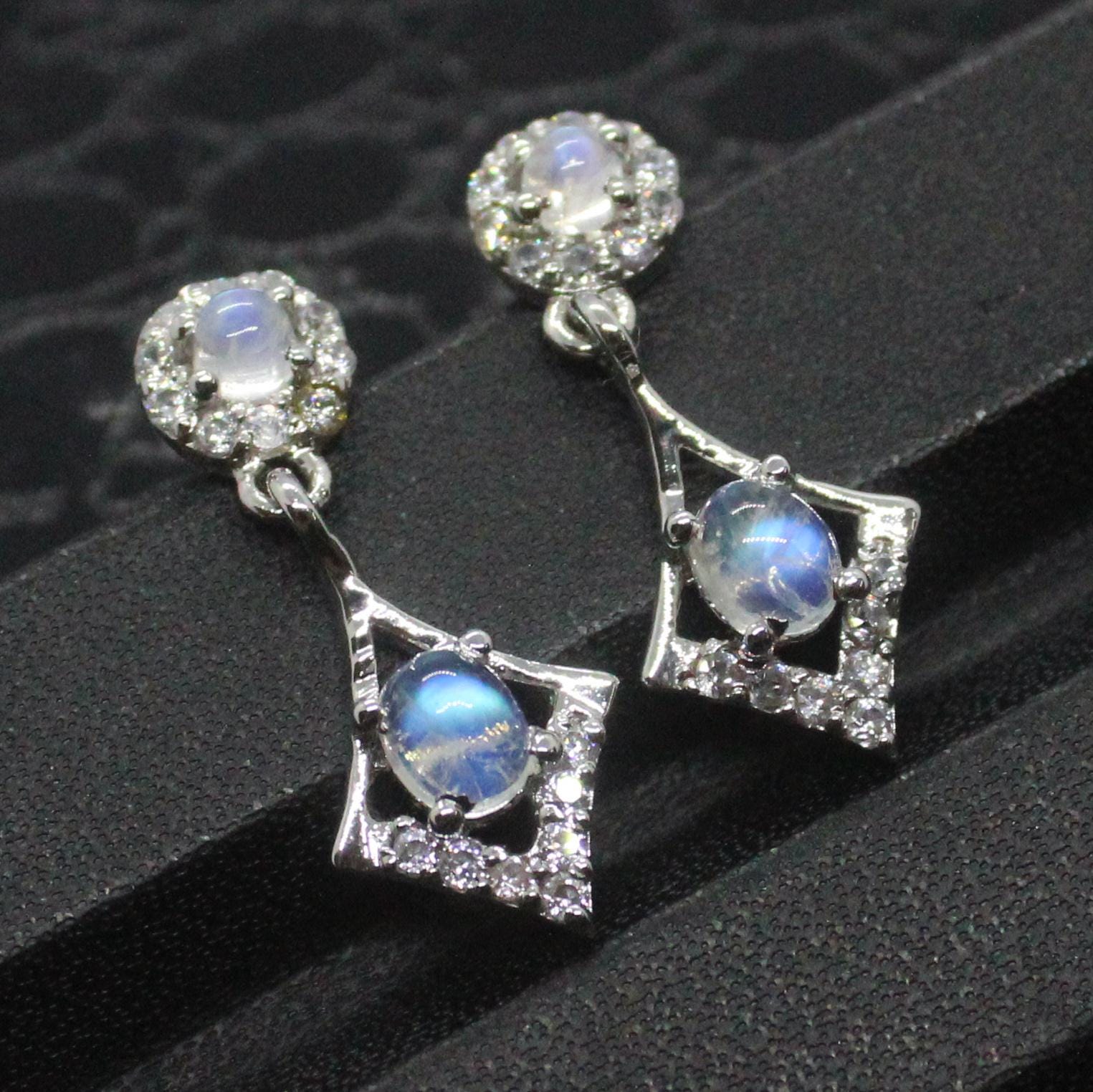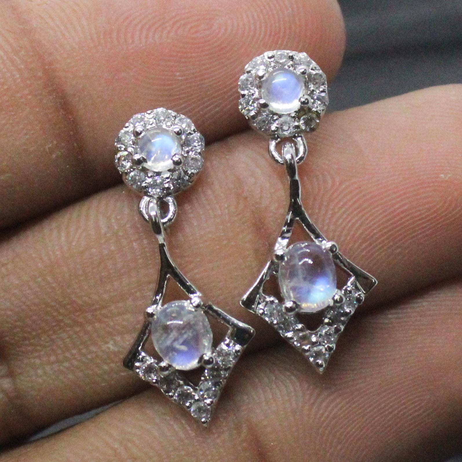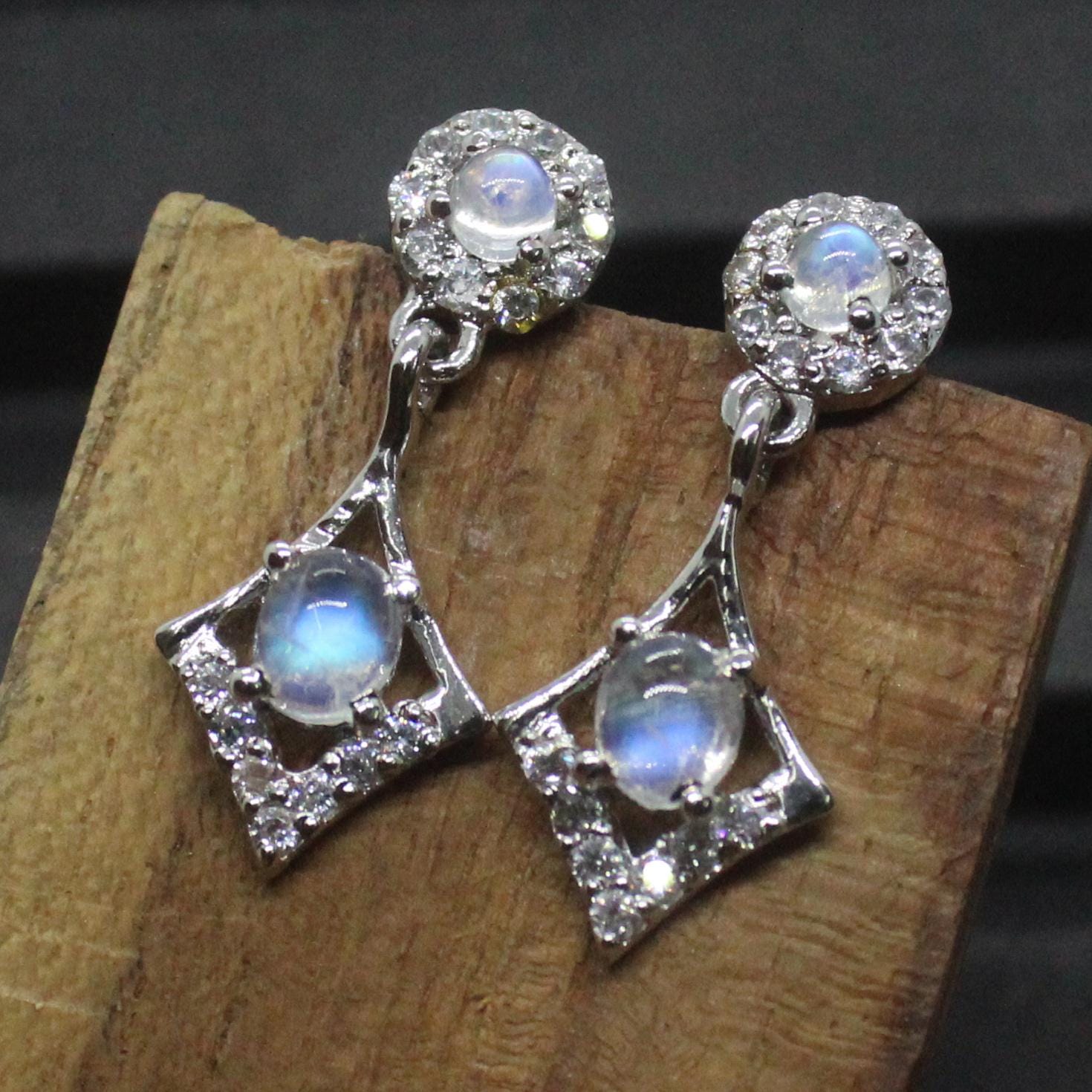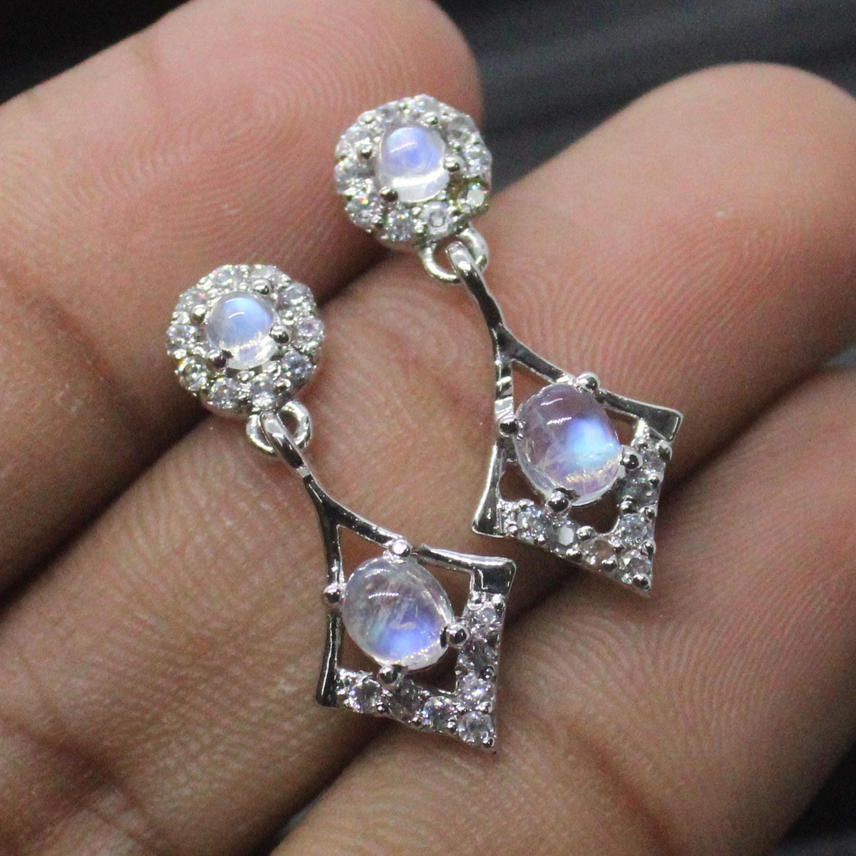 NATURAL WHITE RAINBOW MOONSTONE STUDS WITH STERLING SILVER