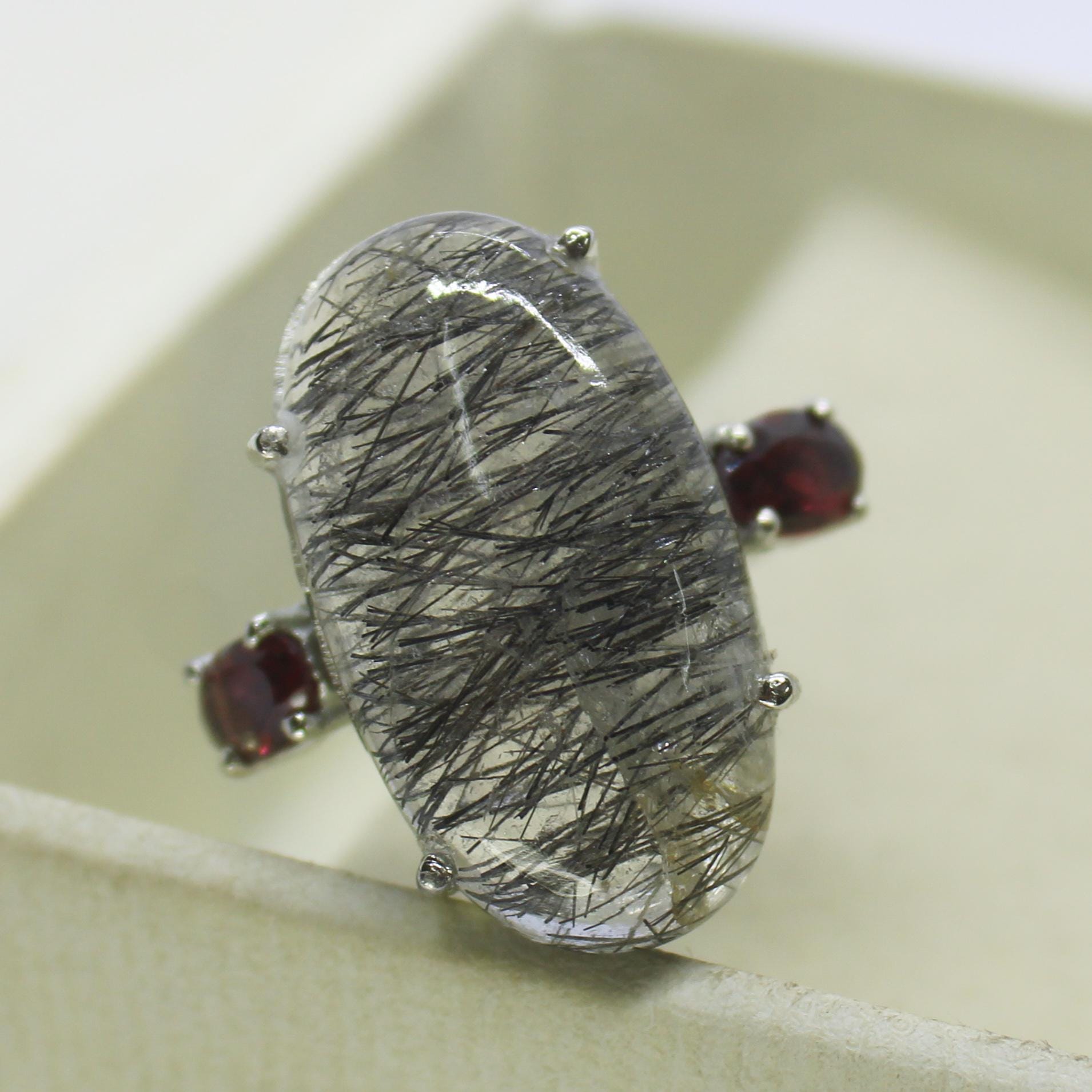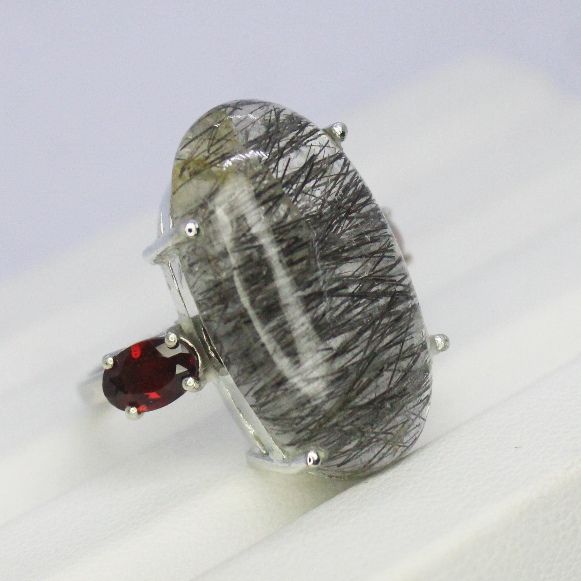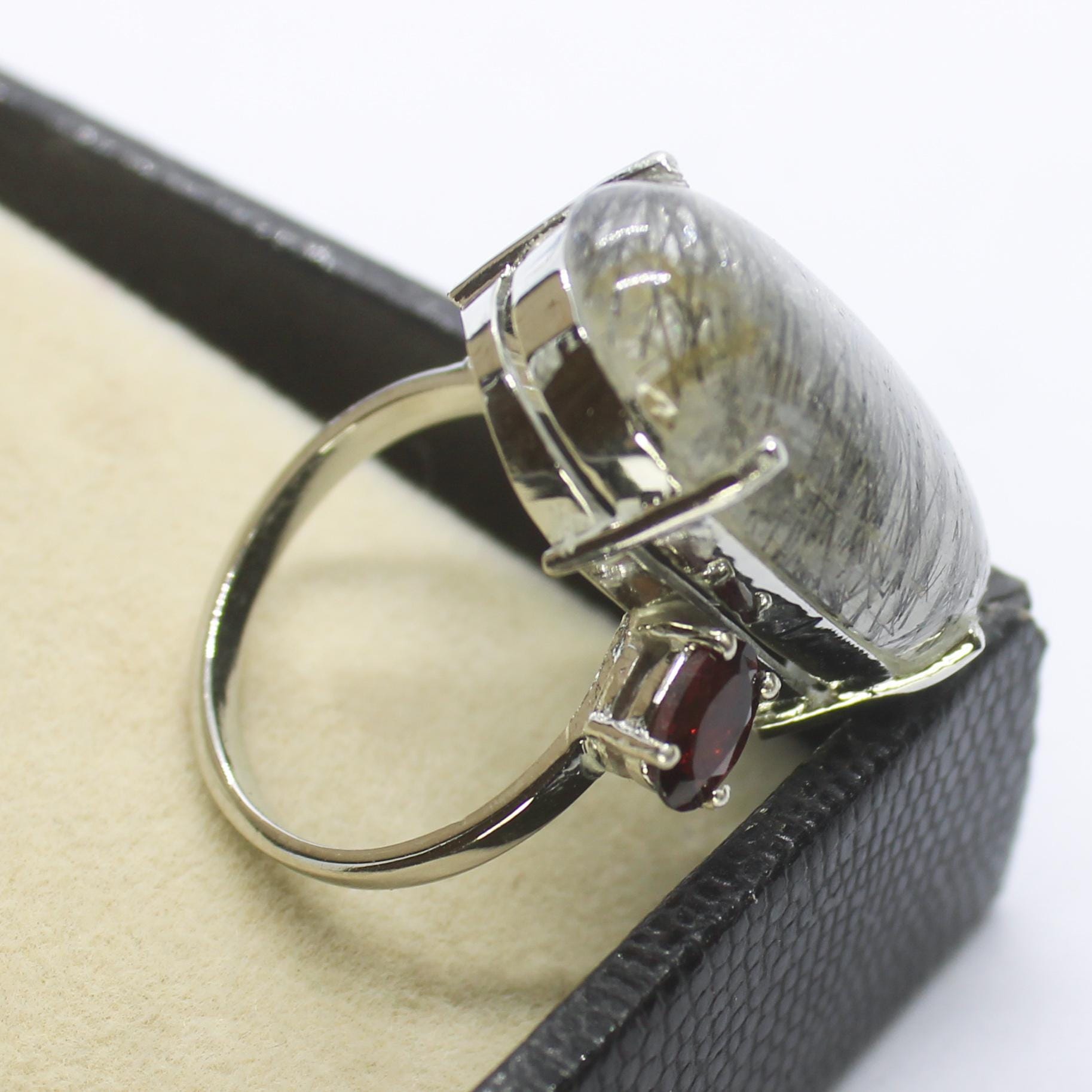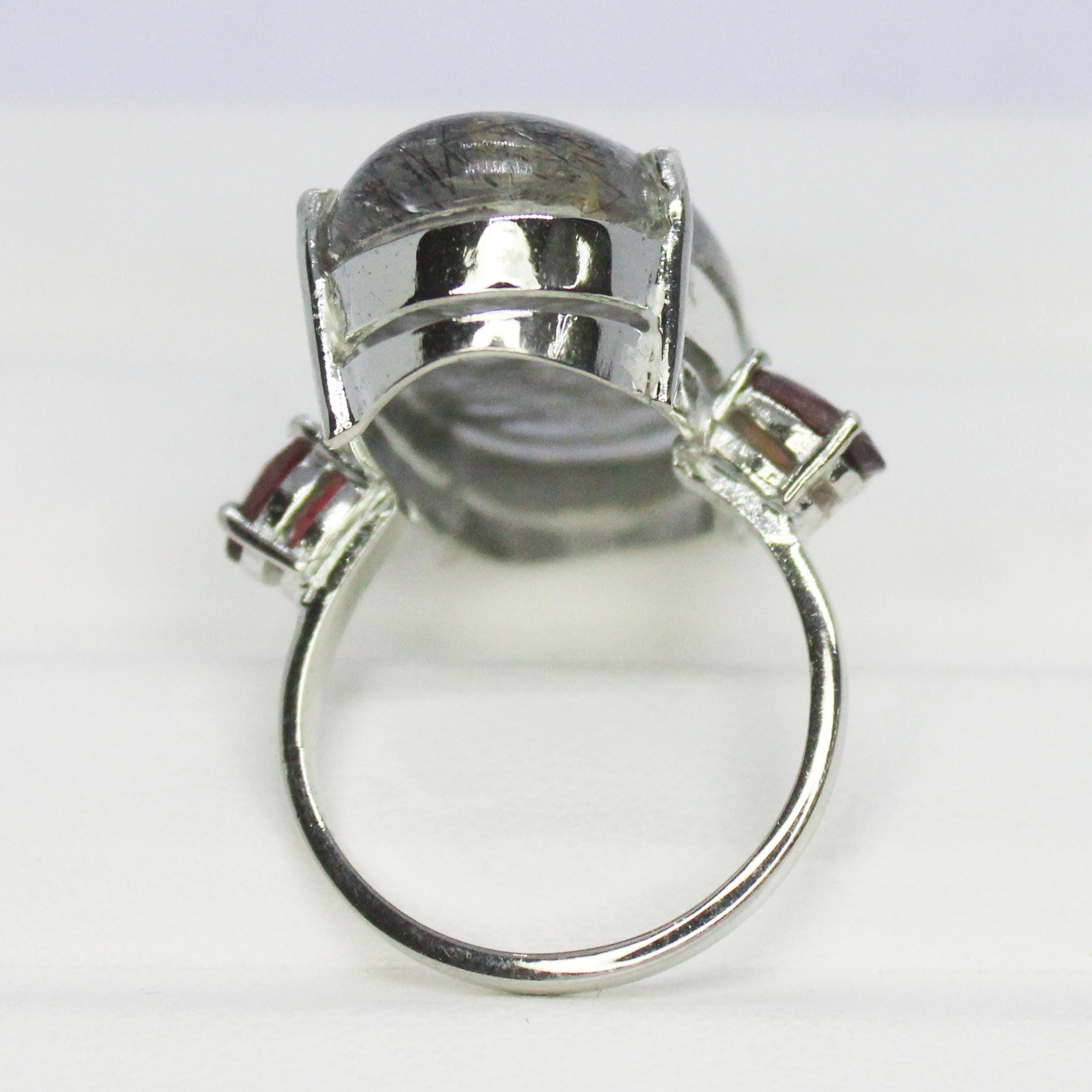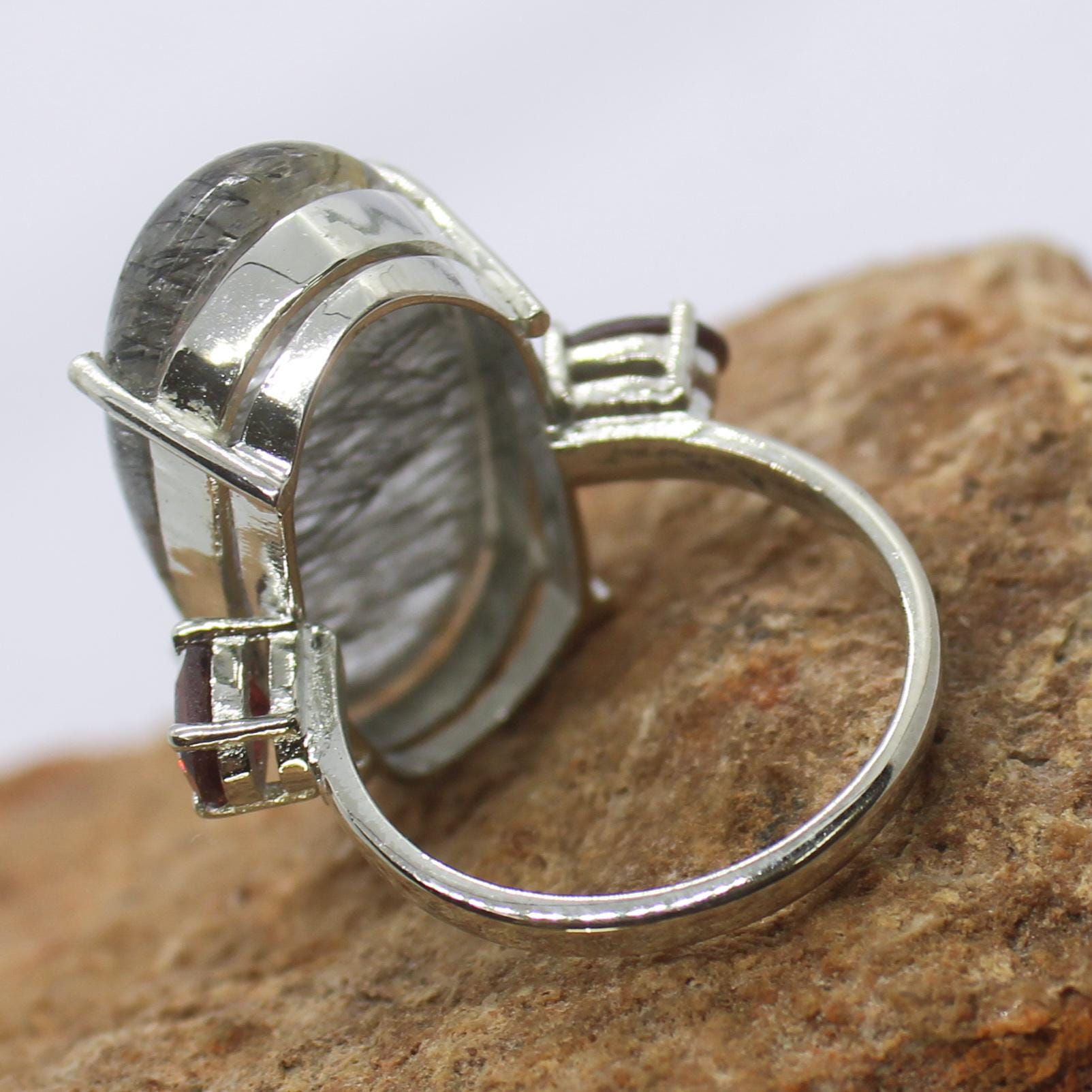 NATURAL RUTILE QUARTZ RING WITH STERLING SILVER