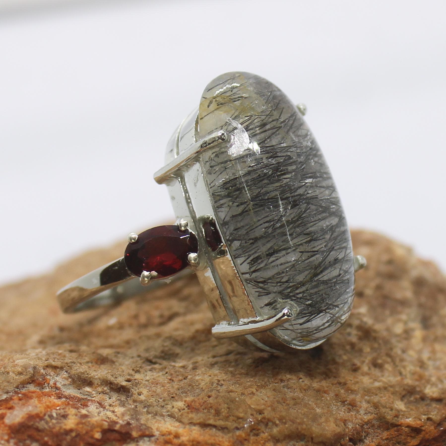 GEMSTONES ON RING - NATURAL RUTILE QUARTZ RING
