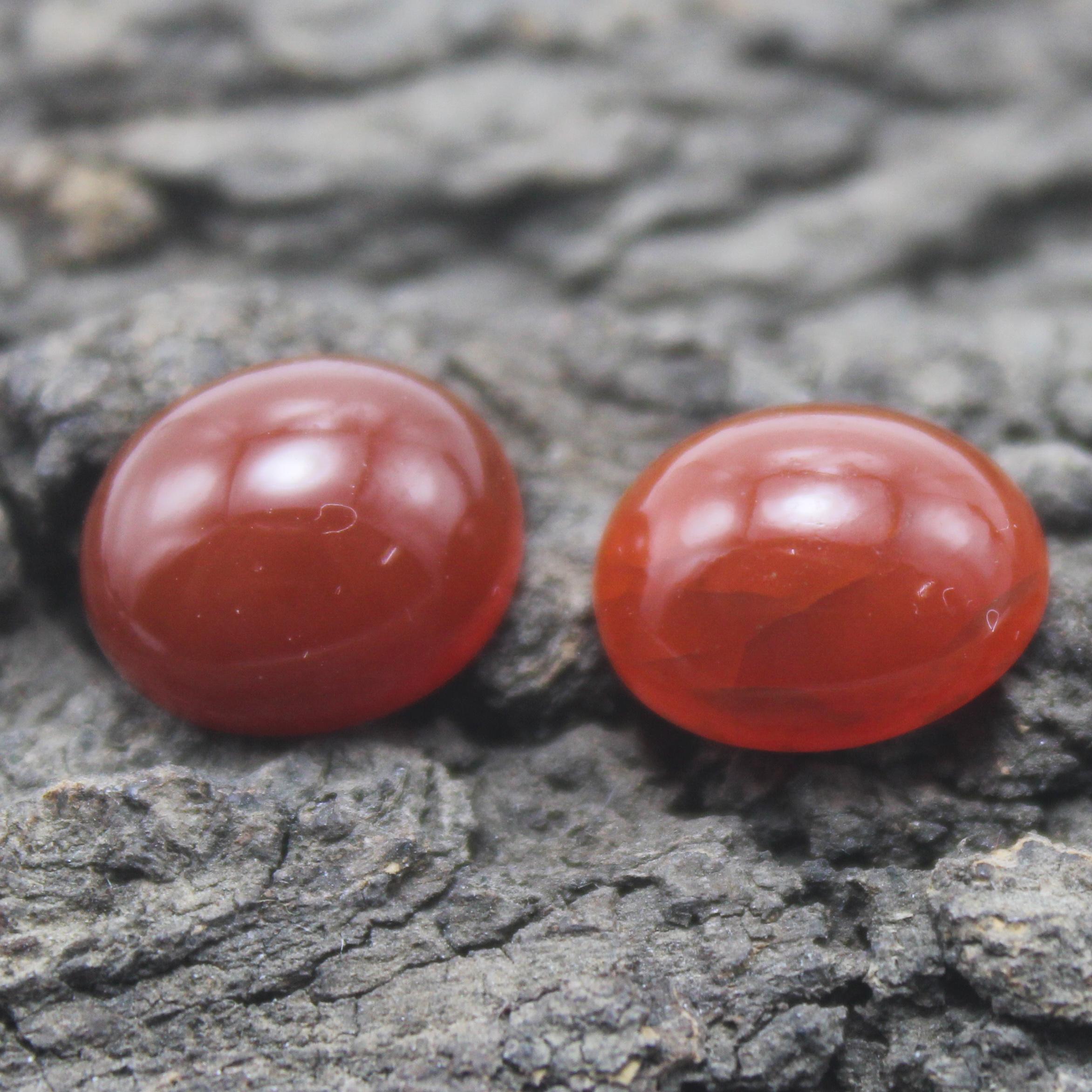 GEMSTONE - NATURAL ORANGE CARNELIAN PAIR CABOCHON